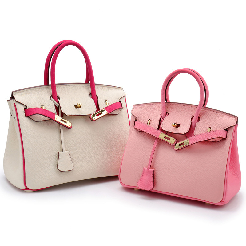 | 真皮女包马卡龙拼色头层牛皮手提女包荔枝纹铂金包 | |