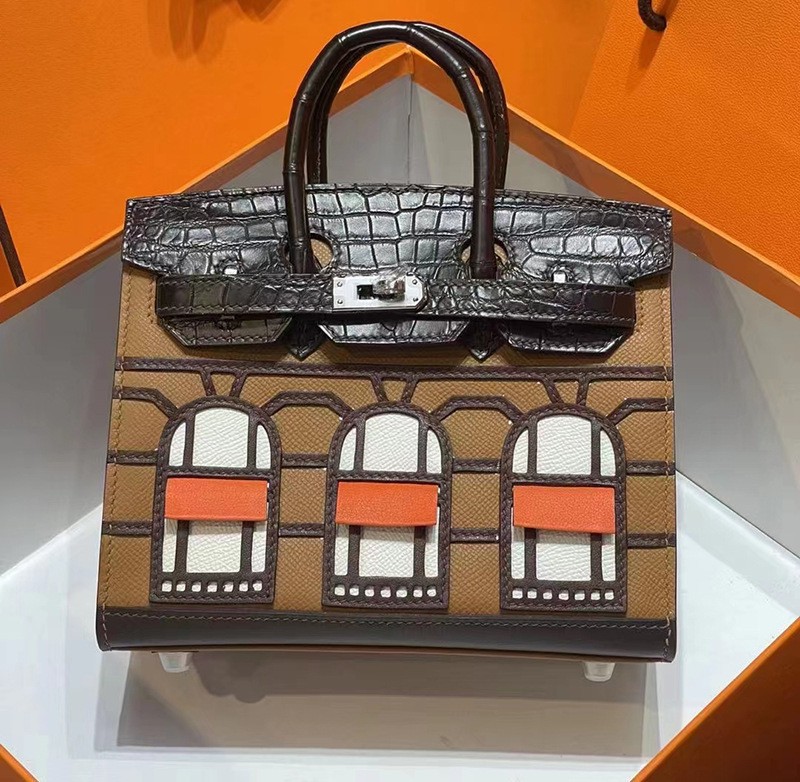 | 2023年新款h家掌纹配鳄鱼纹皮拼色小房子铂金包时尚手提斜跨女包 | |