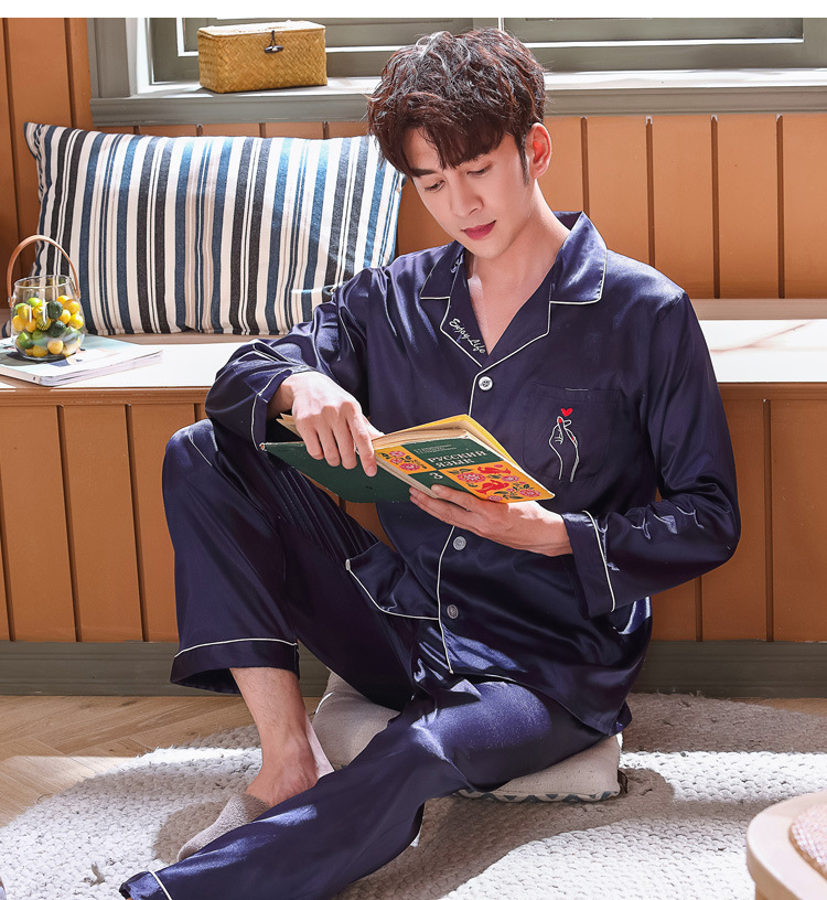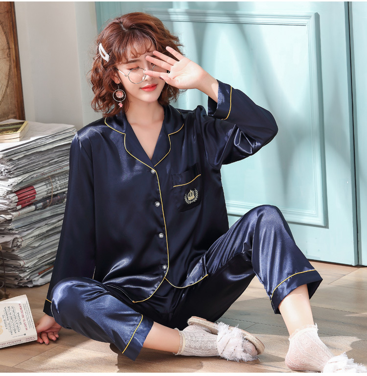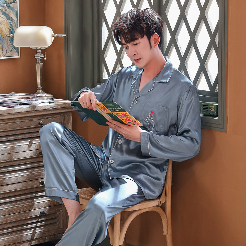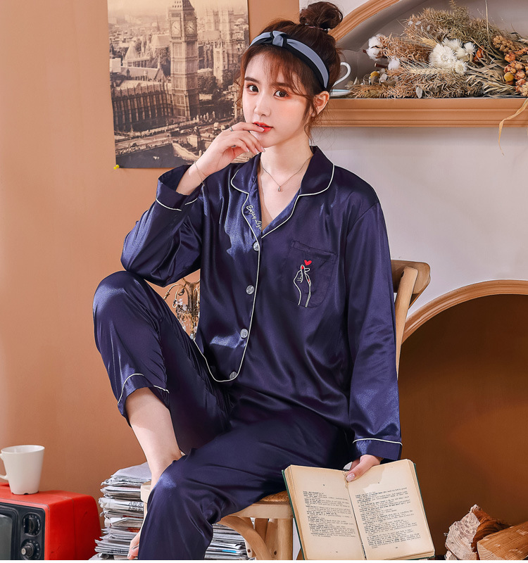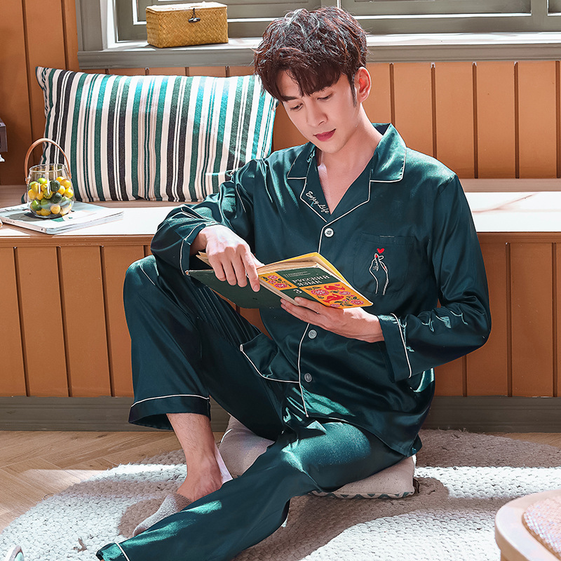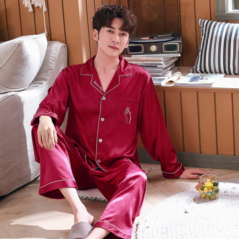 실크 같은 웨딩 커플 잠옷 여자의 봄과 가을 긴팔 가디건 인쇄 홈 의류 남자의 실크 플러스 사이즈 세트