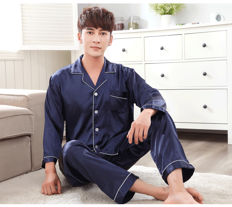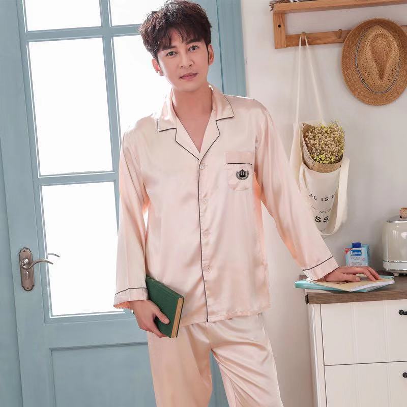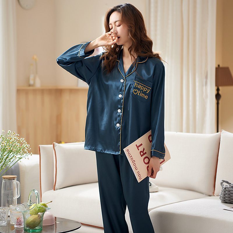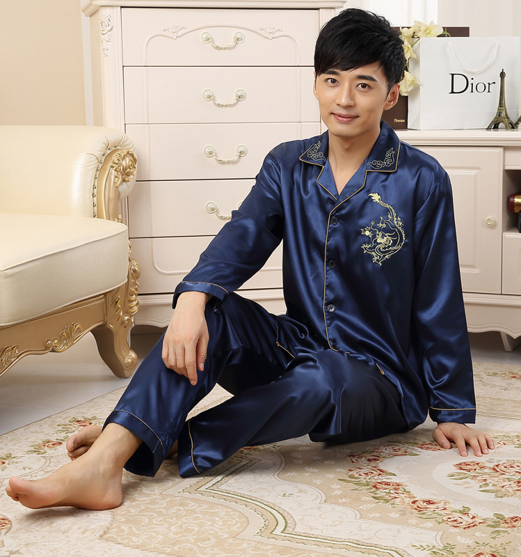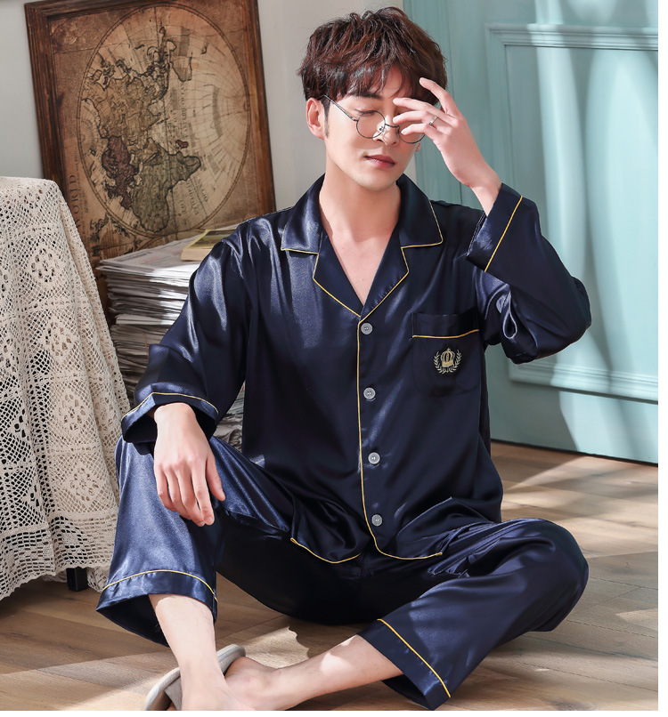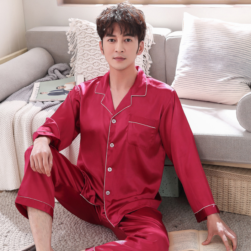 실크 같은 웨딩 커플 잠옷 여자의 봄과 가을 긴팔 가디건 인쇄 홈 의류 남자의 실크 플러스 사이즈 세트