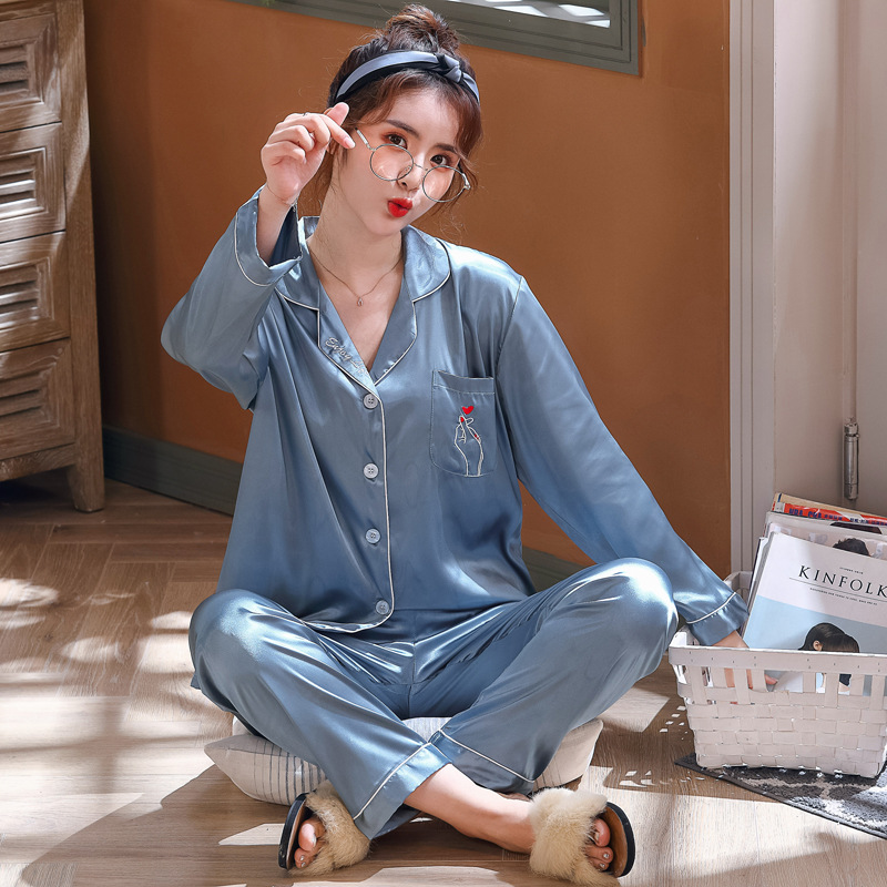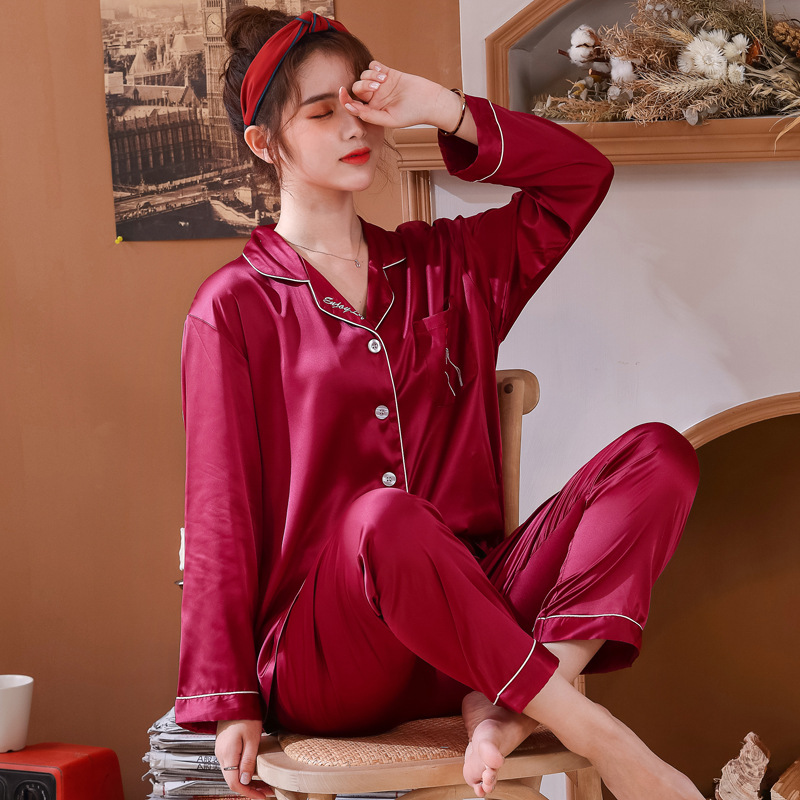 실크 같은 웨딩 커플 잠옷 여자의 봄과 가을 긴팔 가디건 인쇄 홈 의류 남자의 실크 플러스 사이즈 세트스토어 가기