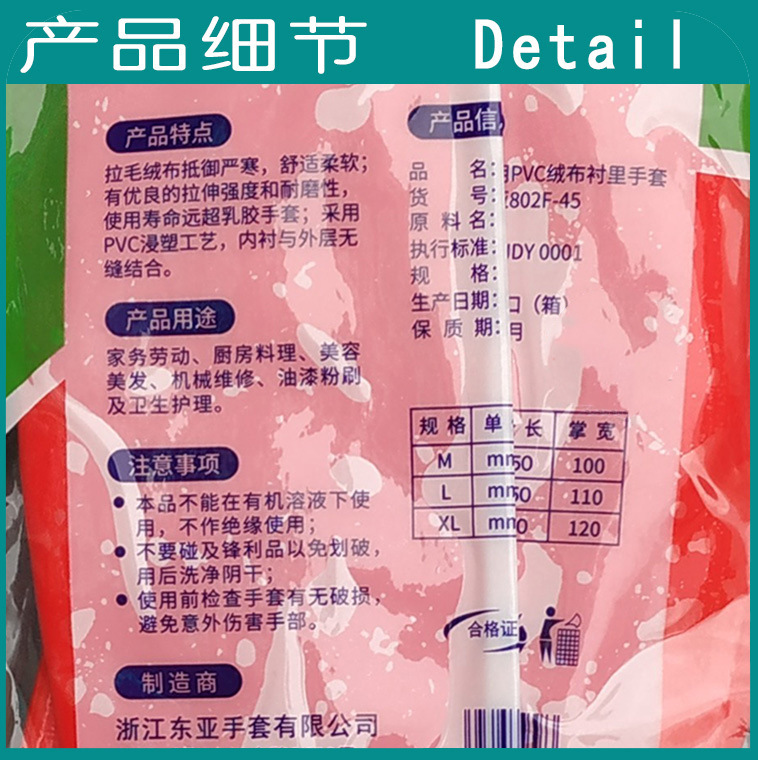 【商品名称】:东亚802F-45保暖家用乳胶清洁手套