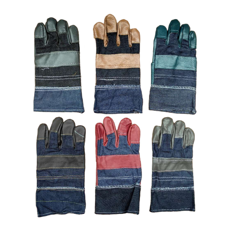 【商品名称】:牛仔布头层牛皮分刀短款电焊手套;
