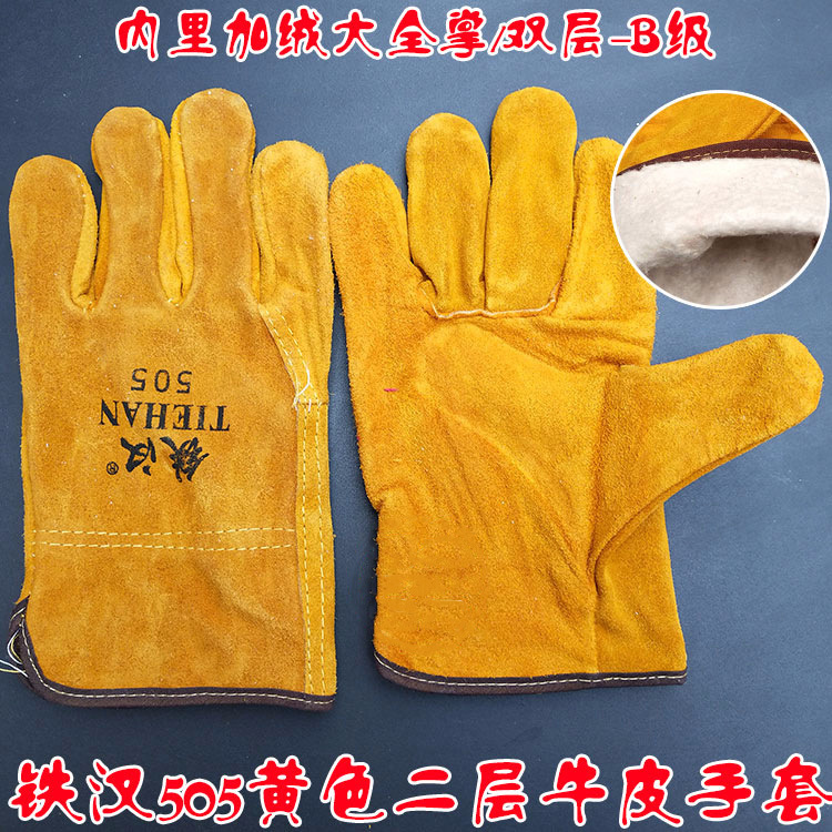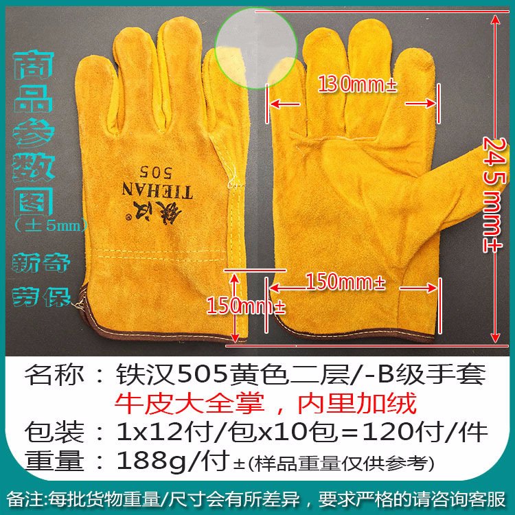 【商品名称】:铁汉505短黄二层牛皮电焊手套