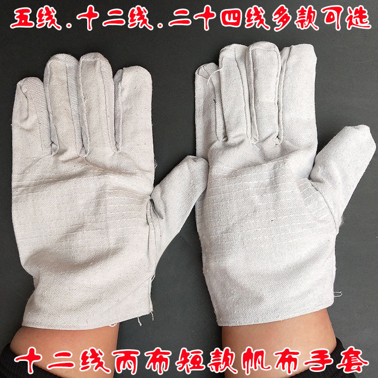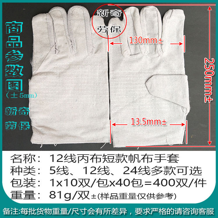 【商品名称】:12线白甲布短款帆布手套(半衬)