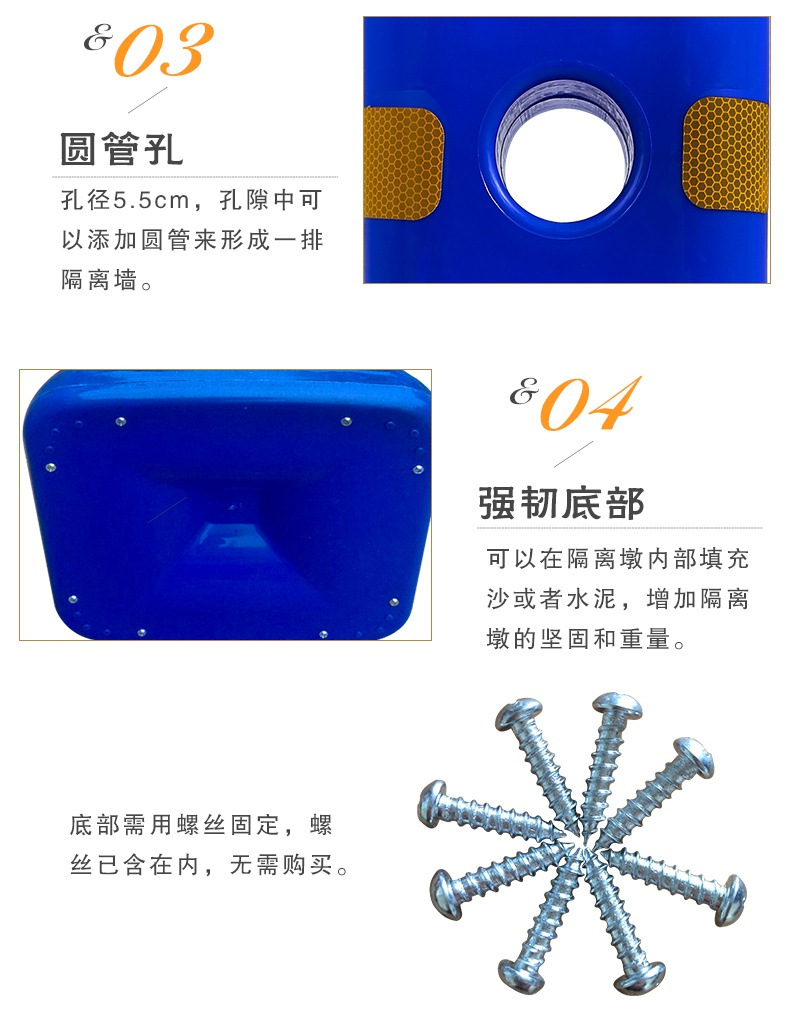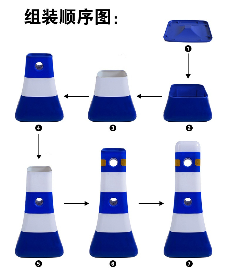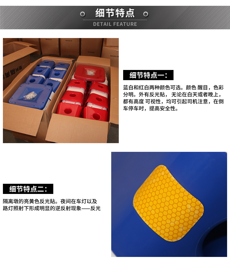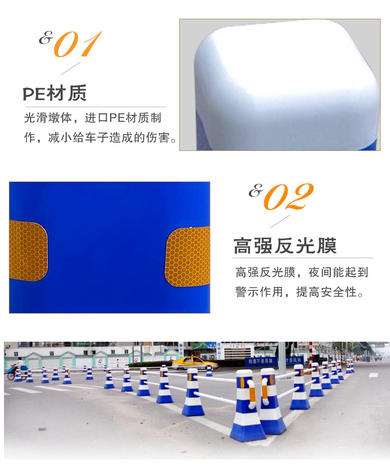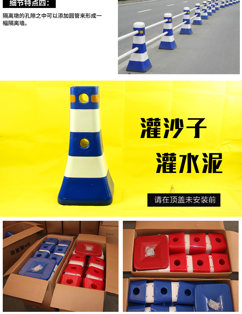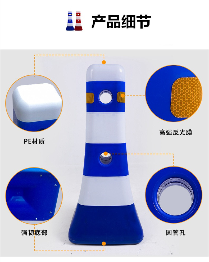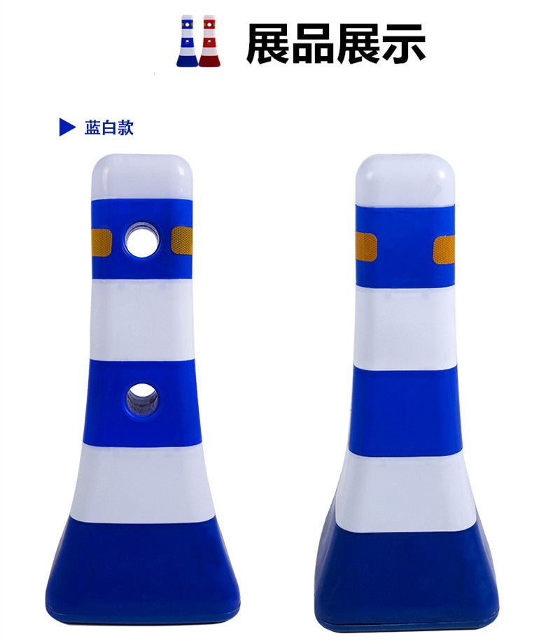 蓝白塑料路障墩 道路分流隔离围栏桶护栏反光锥红白小水马防撞桶