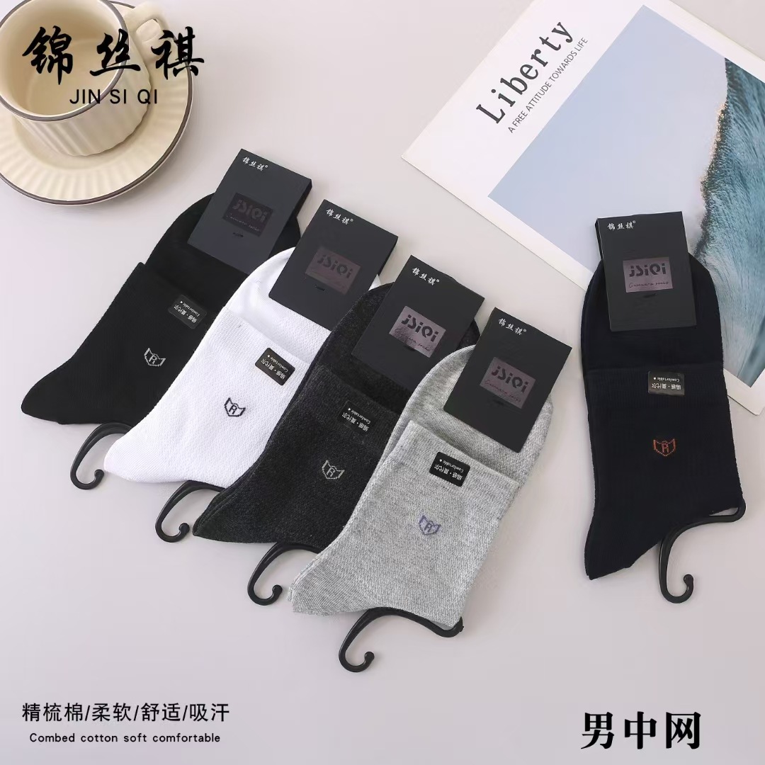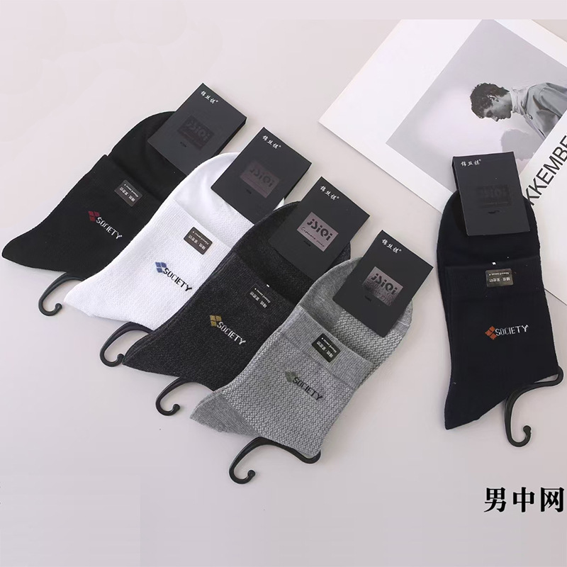 25 봄 여름 남성 비즈니스 메쉬 양말 남성 땀 흡수 통기성 메쉬 양말 제조 업체 도매 중간 허리 캐주얼스토어 가기