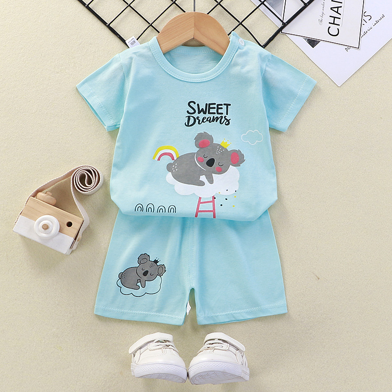 여름 어린이 반팔 반바지 정장 남성 순수 코튼 티셔츠 여성 아기 중소 아동 의류 2025 새로운 제조 업체 도매