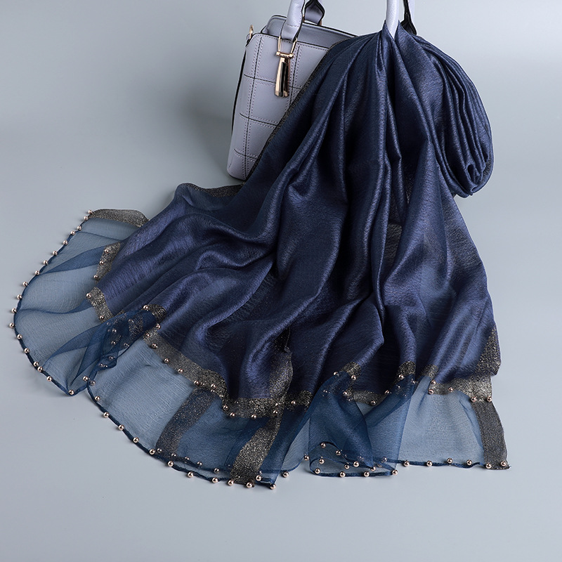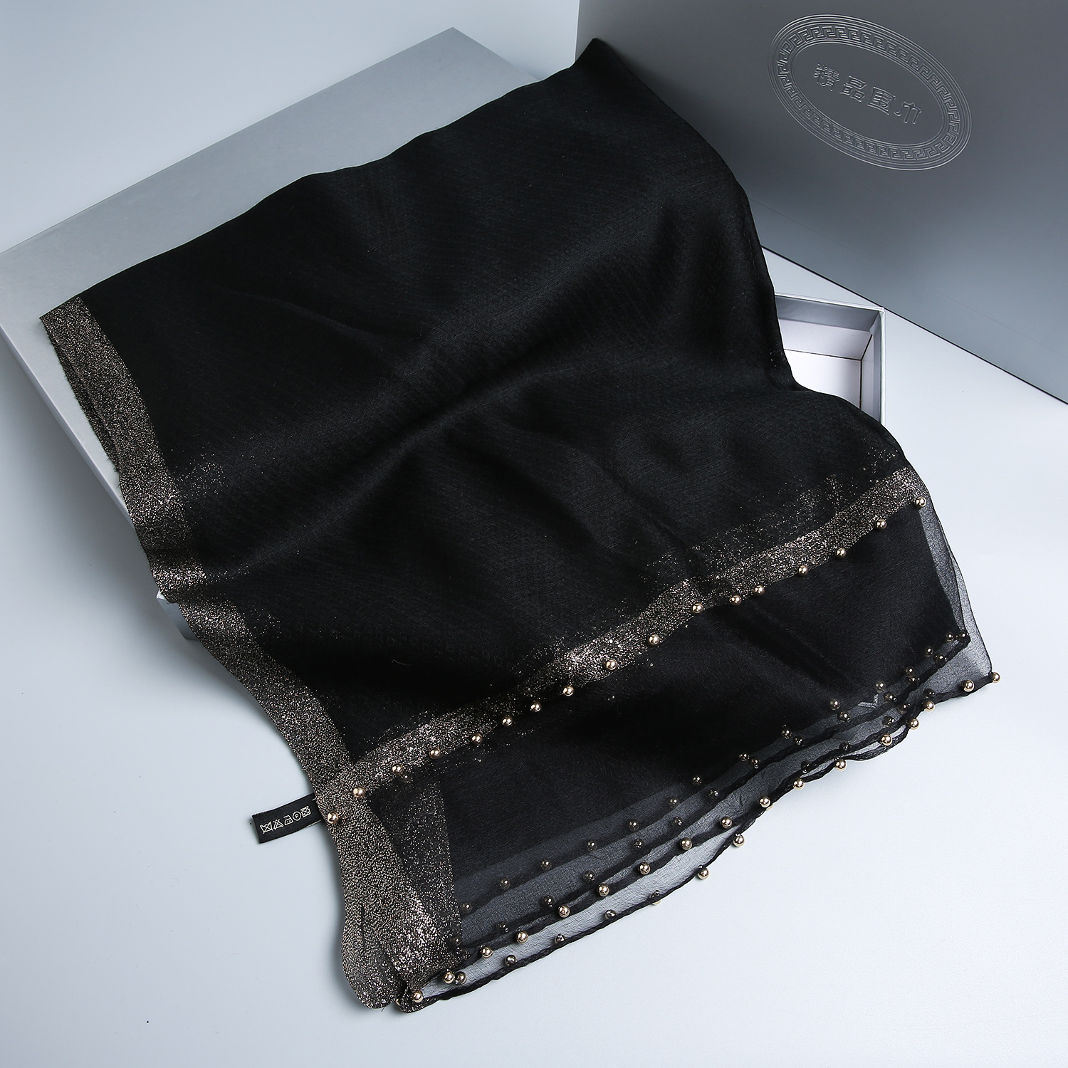 새로운 뽕나무 실크 단색 실크 스카프 여성의 모든 일치 밝은 뜨거운 드릴링 실크 울 긴 숄 스카프 도매