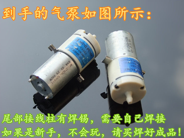 本款气泵为拆机货,尾部接线柱需要焊接,有动手能力的亲们购买(没有动手能力请购买:成品套餐)手机端联系联系客服发成品链接。多个使用,一般用并联,气泵的功率很小。如果要用充电宝,用3个以上气泵并联起来!