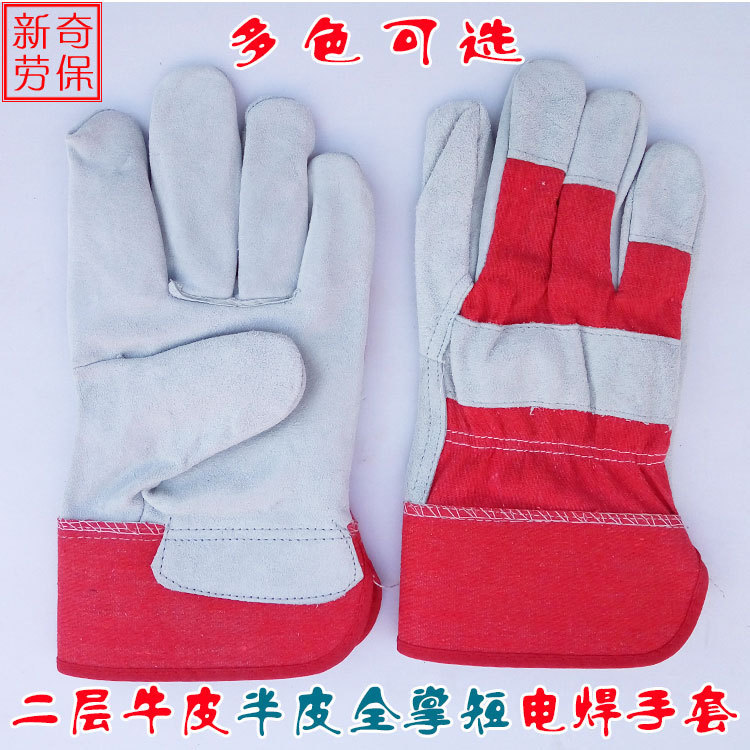二层牛皮黄色半皮全掌短款电焊手套_32