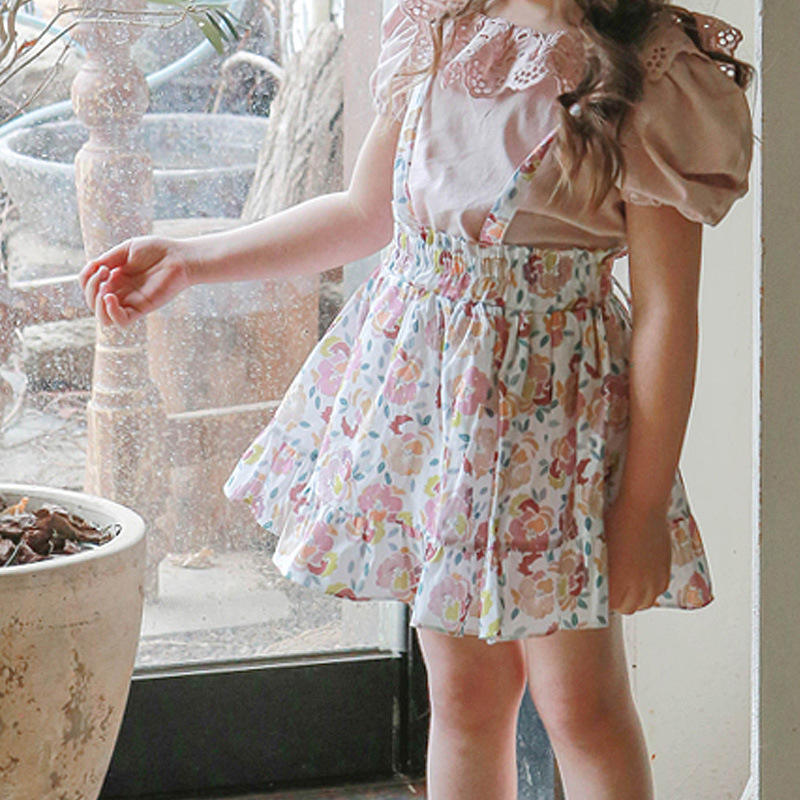 2024 여름 딸기 산 한국 어린이 착용 어린이 소녀 신선한 꽃 슬립 원피스 재고스토어 가기