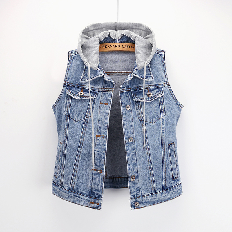 새로운 봄과 가을 찢어진 짧은 탑 민소매 데님 조끼 여자의 조끼 어깨 외부 재킷 조끼 카디건스토어 가기
