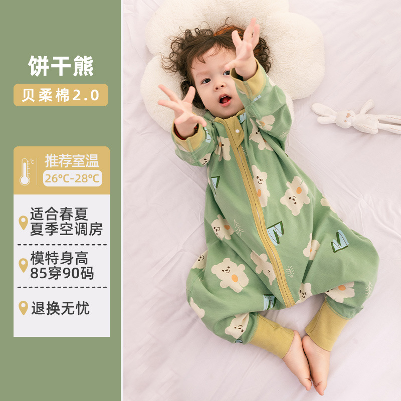 Huxibei 어린이 다리 침낭 봄과 여름 얇은 에어컨 방 큰 아기 어린이 다리 잠옷 No.2 New스토어 가기