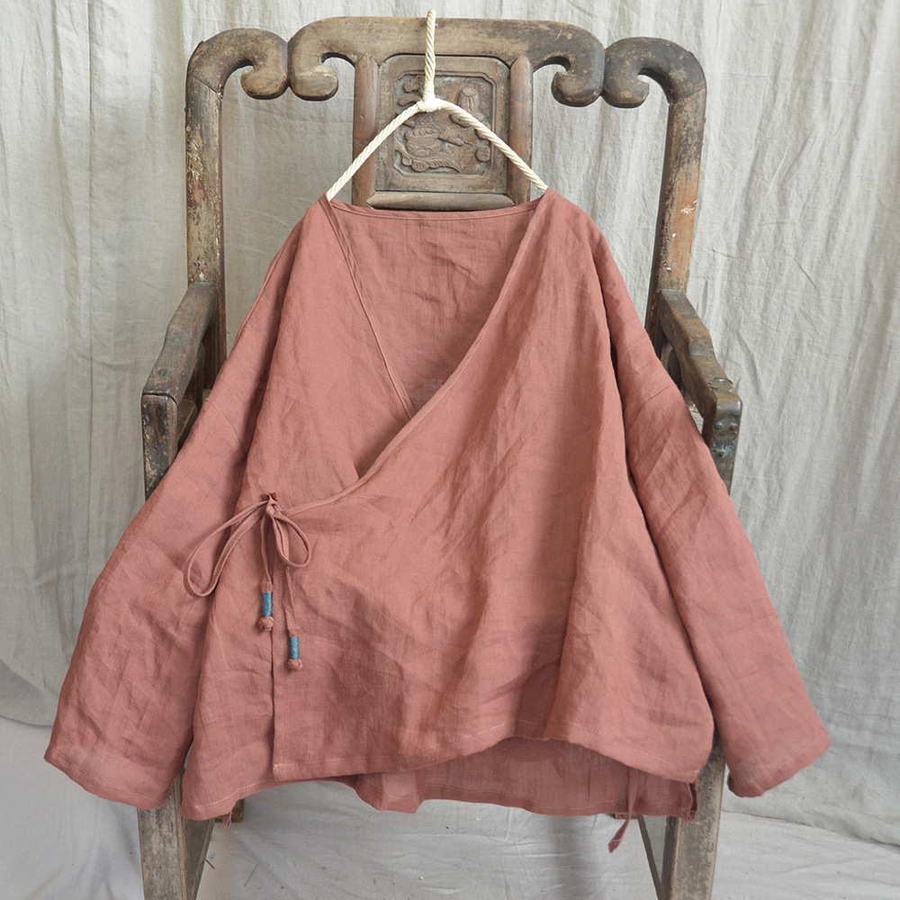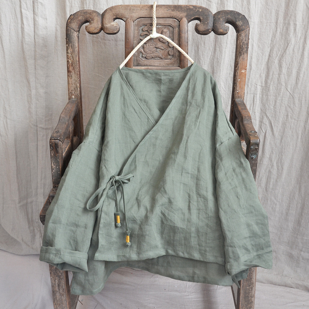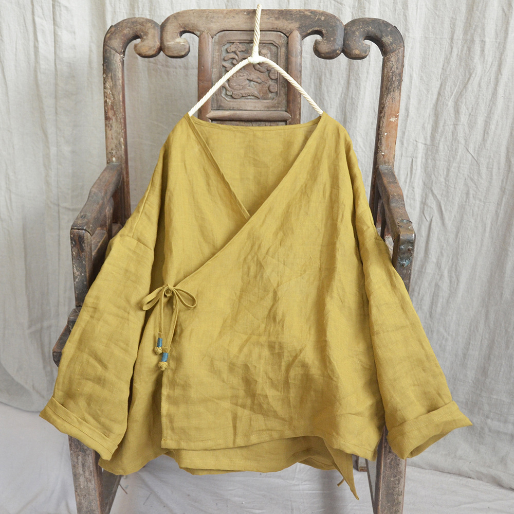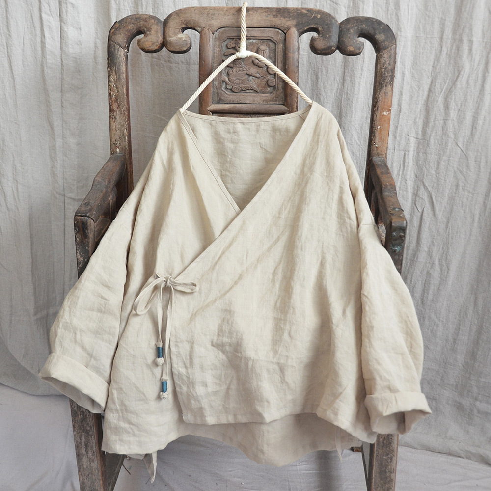 Qiuer/오블리크 레이스업 코튼 및 린넨 탑 루즈한 탑 불규칙한 밑단 가디건 스몰 셔츠 여성용 셔츠스토어 가기
