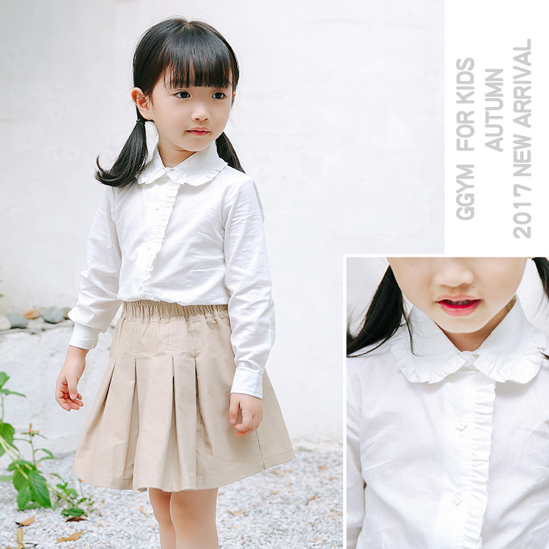 【杨梅自制】2019春季新款女童学院风衬衫 宝宝娃娃领衬衣包邮