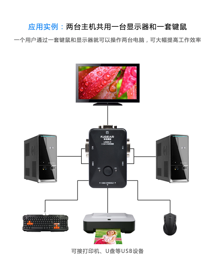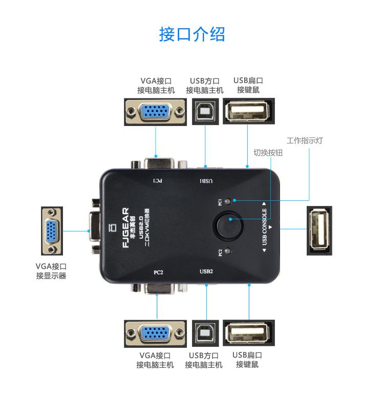 제조업체 공급 kvm 스위처 2 포트 USB VGA 2-in -1-out 듀얼 컴퓨터 공유 키보드 및 마우스 스위처스토어 가기