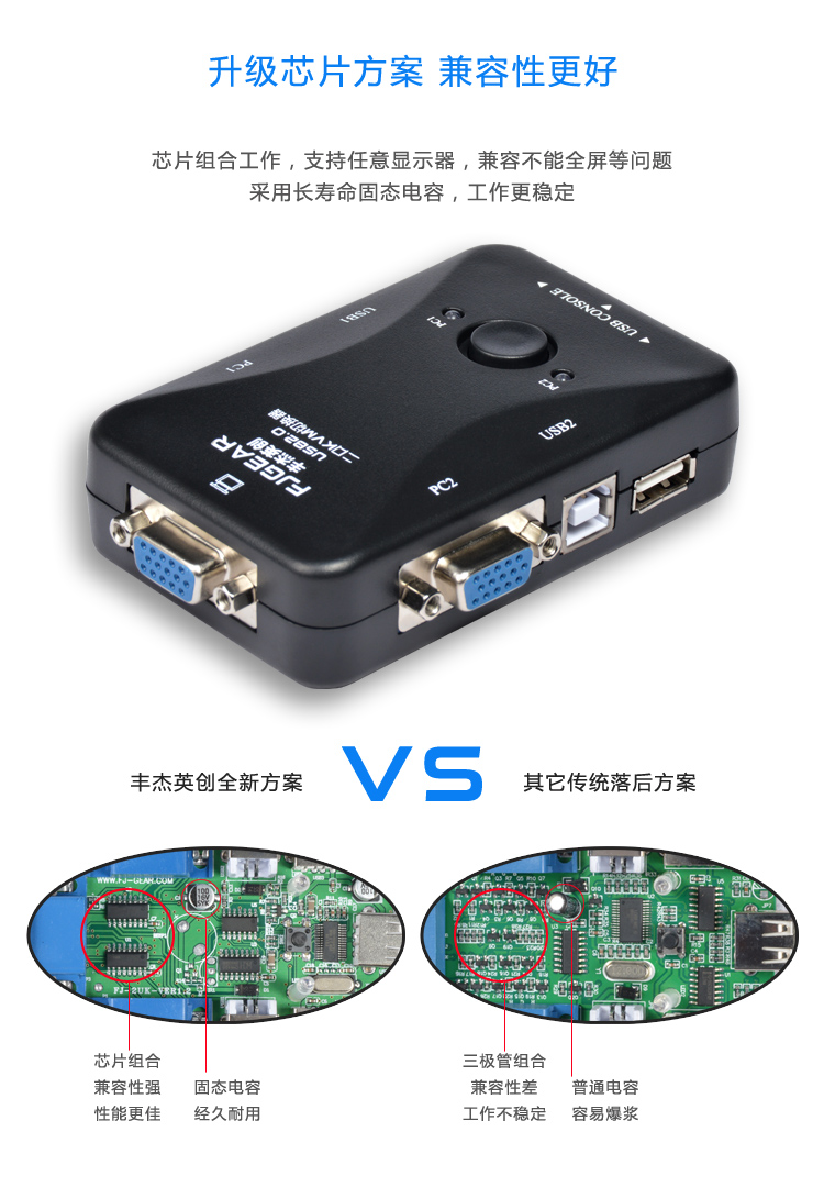 제조업체 공급 kvm 스위처 2 포트 USB VGA 2-in -1-out 듀얼 컴퓨터 공유 키보드 및 마우스 스위처