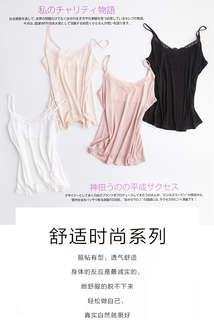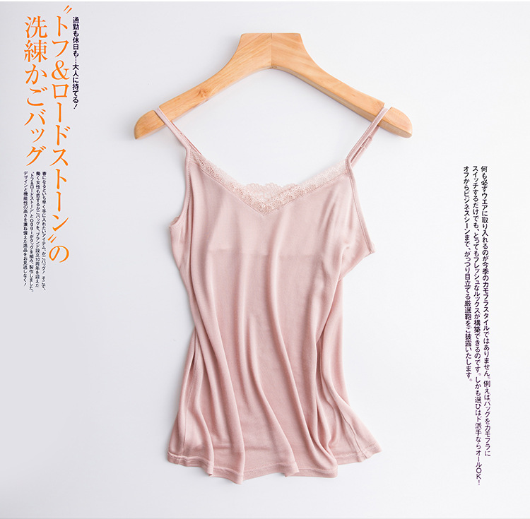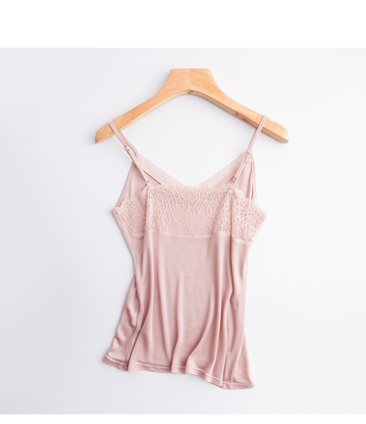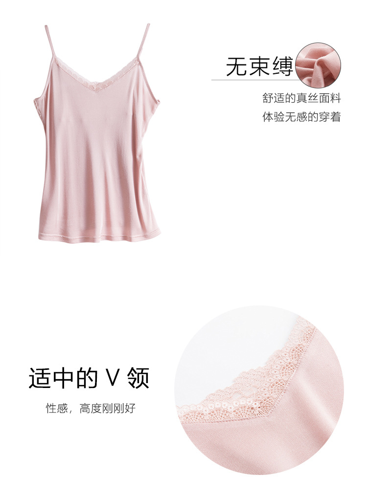 탱지 실크 슬링 여성용 짧은 느슨한 인테리어 단색 뽕나무 실크 레이스 V-넥 베이스