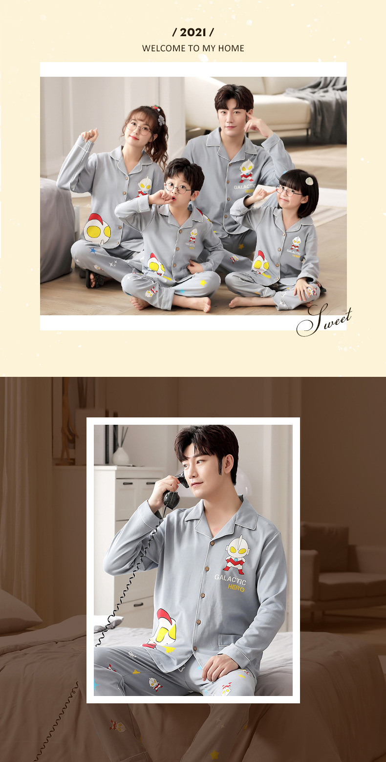 부모-자식 잠옷 면 봄 가을 카디건 면 가족 의류 어머니와 딸 네 남자의 가족 남성과 여성 어린이 가정 의류 세트