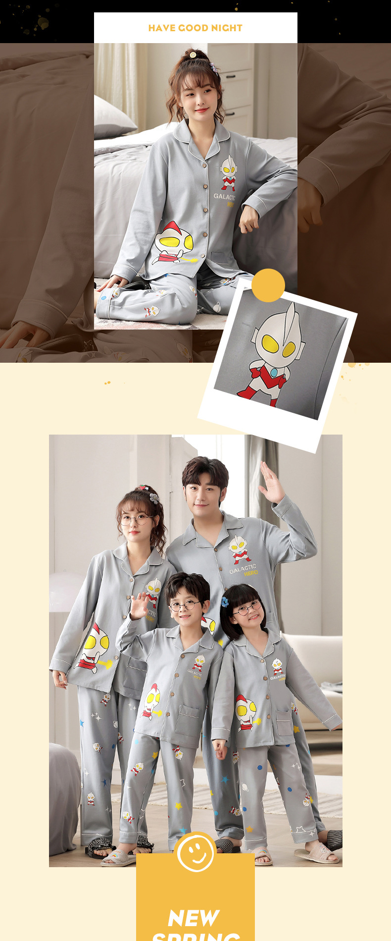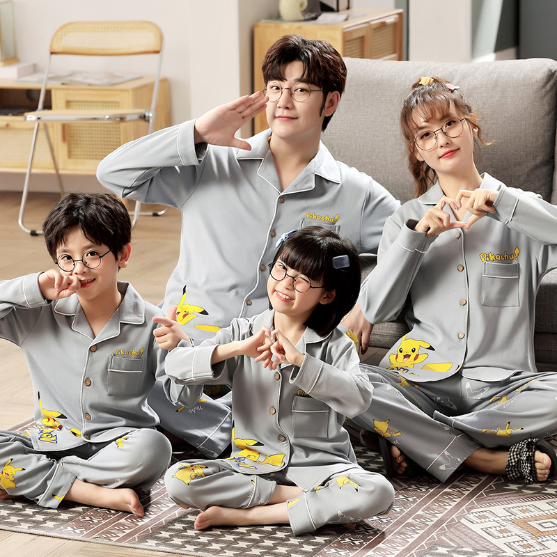 부모-자식 잠옷 면 봄 가을 카디건 면 가족 의류 어머니와 딸 네 남자의 가족 남성과 여성 어린이 가정 의류 세트스토어 가기