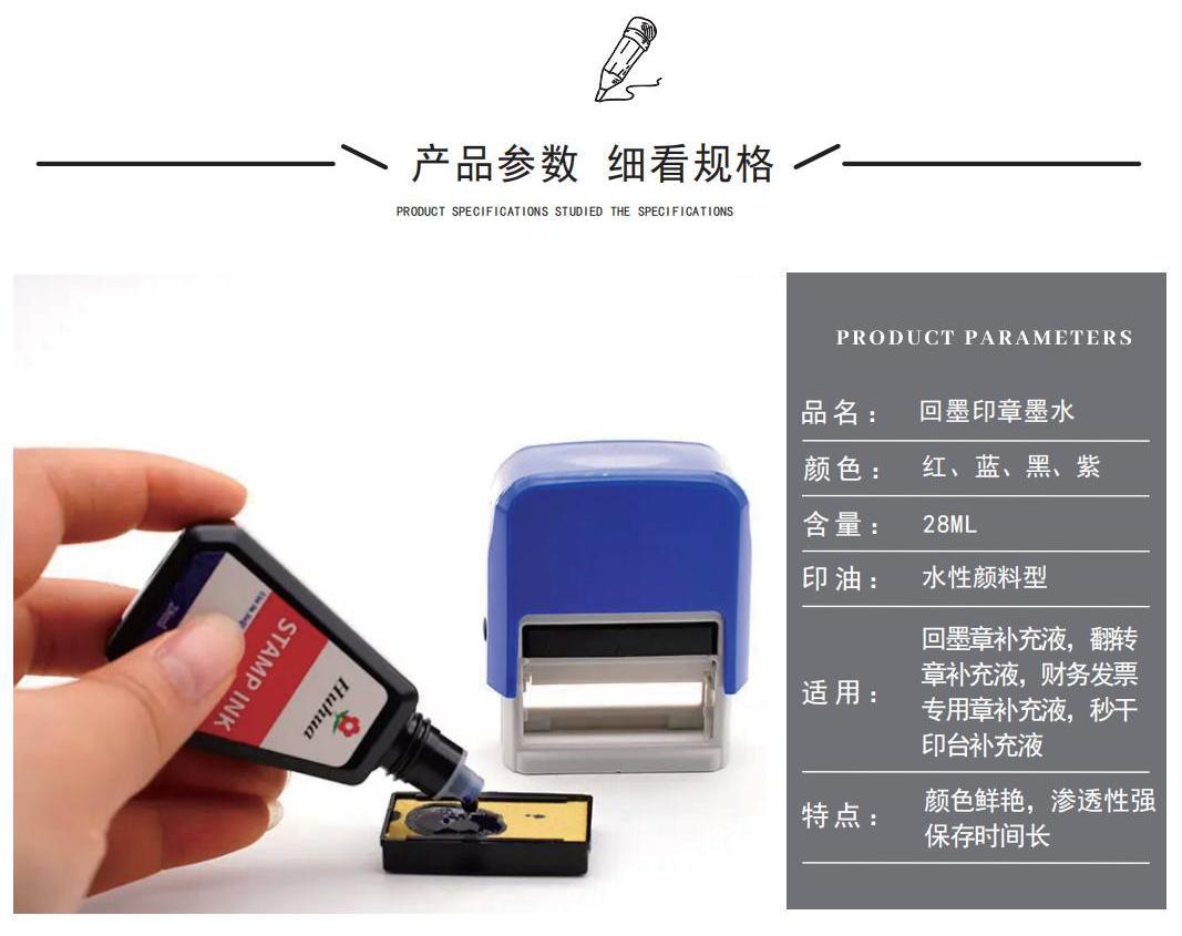 28ml速干清晰水性环保翻转回墨印章油墨印章材料财务办公用品专用