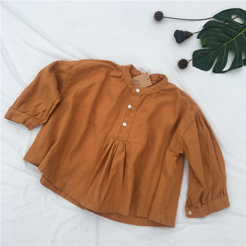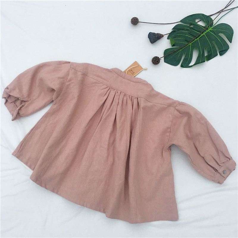 아기 인형 셔츠 2024 봄 새로운 신선한 문학 느슨한 소녀 a 라인 셔츠 긴팔 셔츠 아동상의스토어 가기