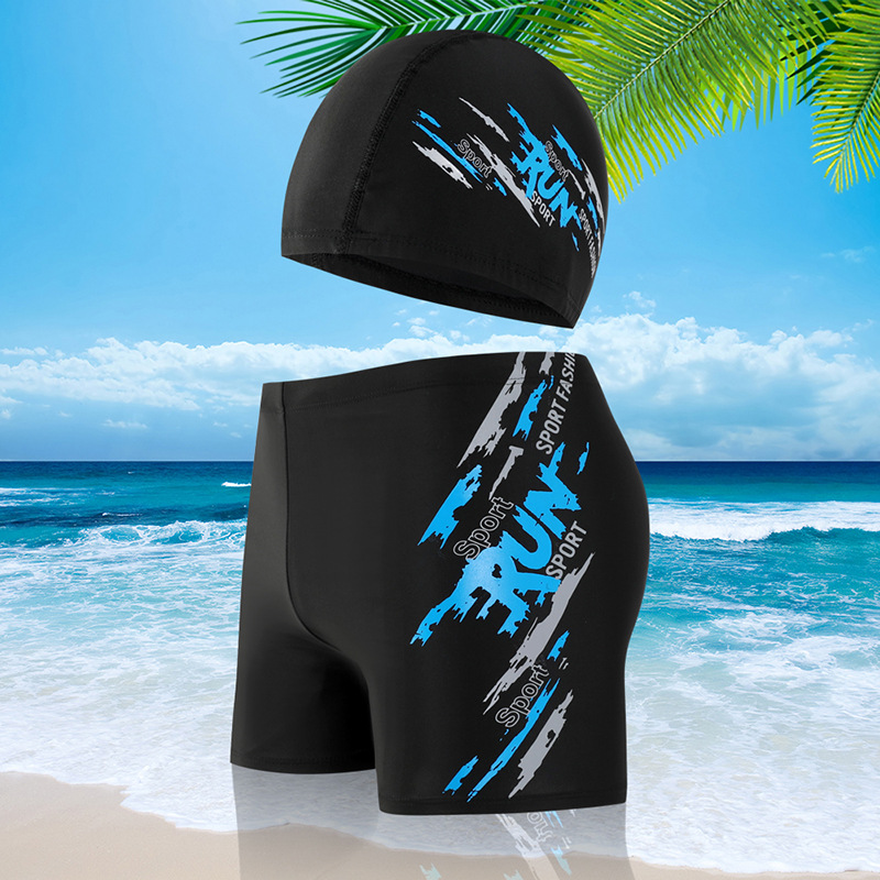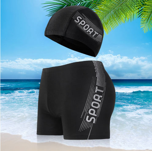 새로운 온천 남자 복서 수영 트렁크 남성 수영 모자 수영 트렁크 세트 제조업체 도매 성인 수영 트렁크