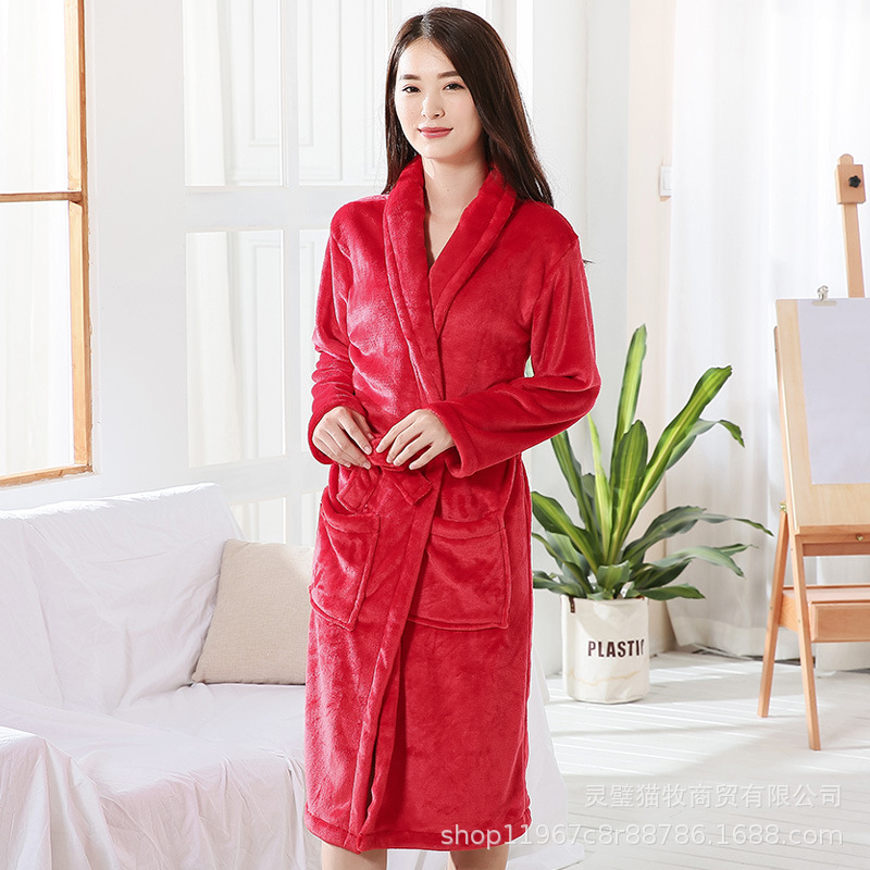 공장 명소 플란넬 잠옷 여분의 긴 산호 벨벳 목욕 가운 커플 가정 의류 잠옷 가을, 겨울 남성과 여성 목욕 가운