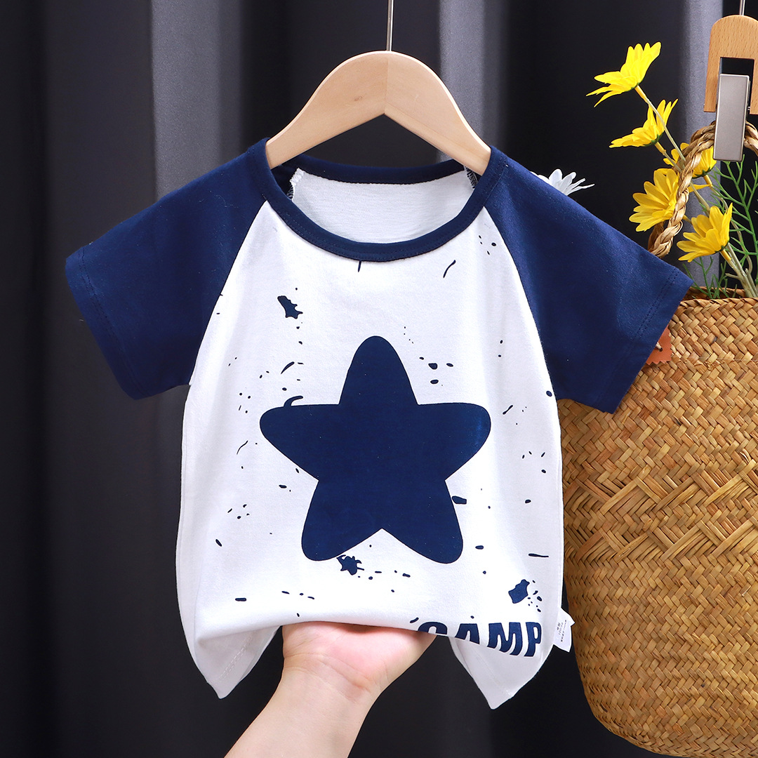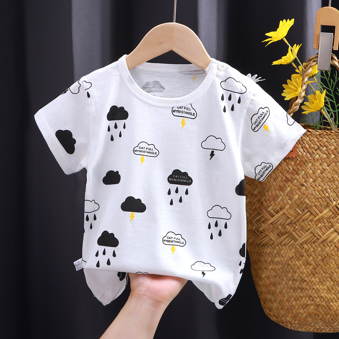 어린이 반팔 티셔츠 순면 아기의 만화 얇은 반팔 소녀 여름 새로운 한국 스타일 어린이 싱글 피스 티셔츠 아동복스토어 가기
