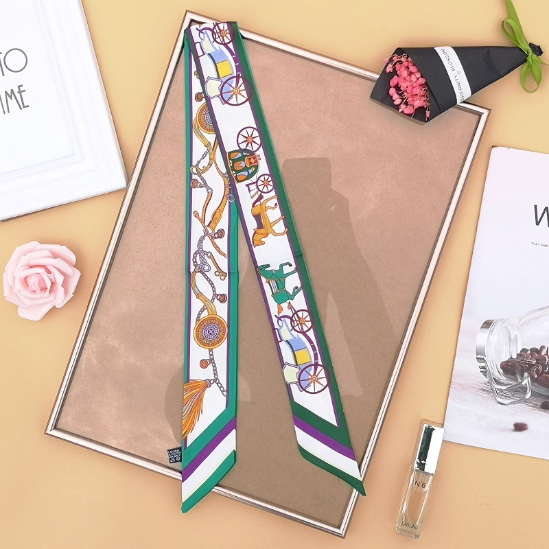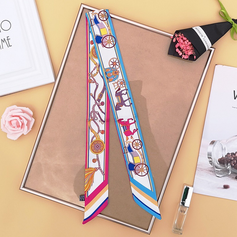 H 새로운 실크 백 스카프 여성의 여름 좁은 리본 헤어 벨트 캐리지 작은 긴 스카프 장식 가방 도매