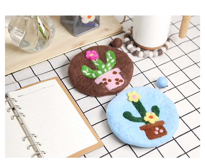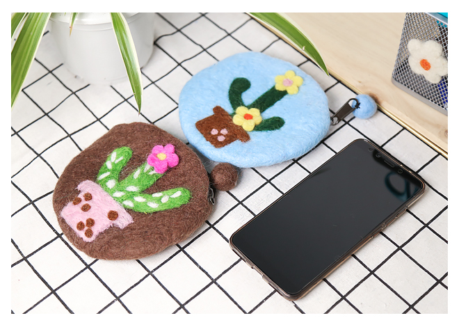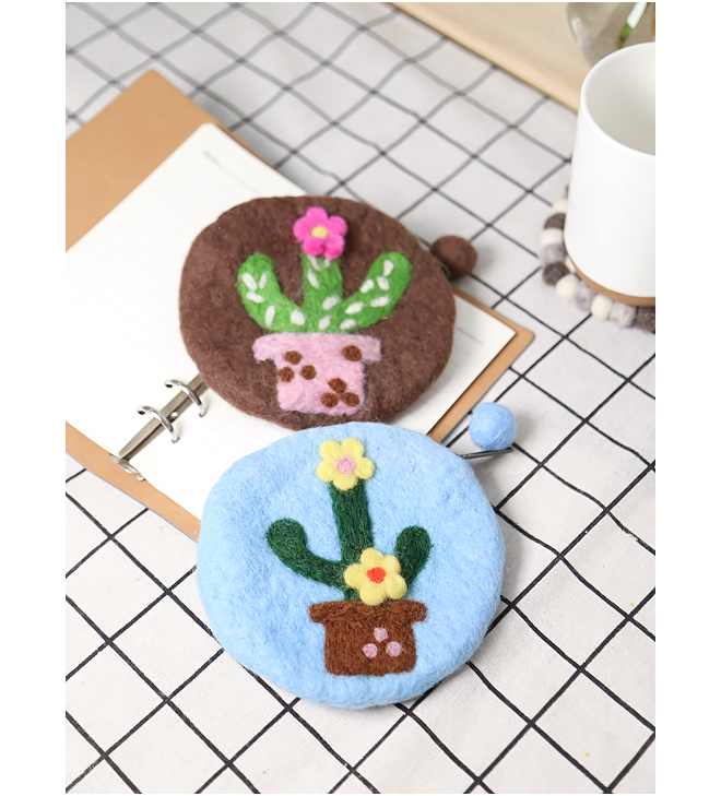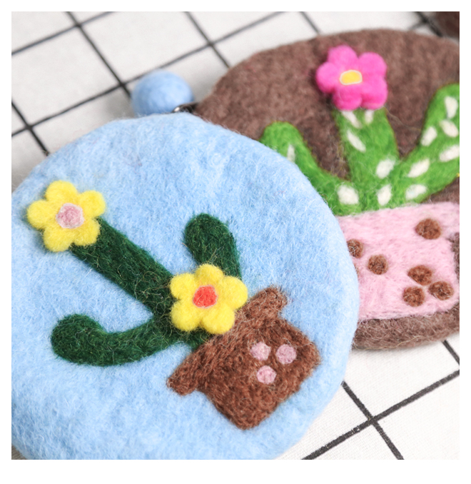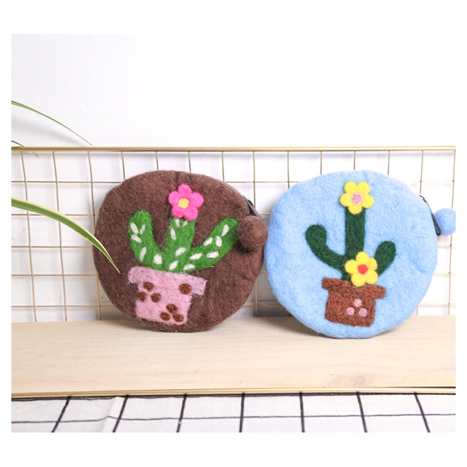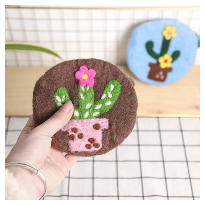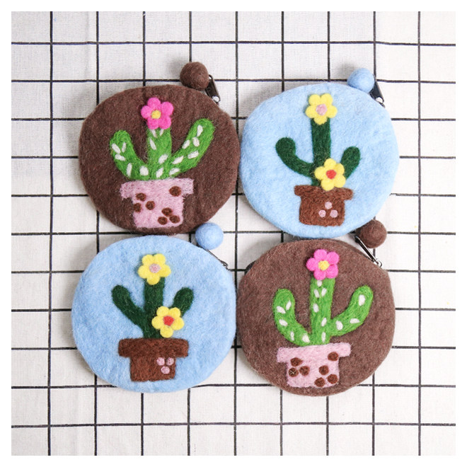 수제 양모 펠트 선인장 동전 지갑 모리 소녀와 귀여운 봉제 창조적 인 선물 우아한 일본식스토어 가기