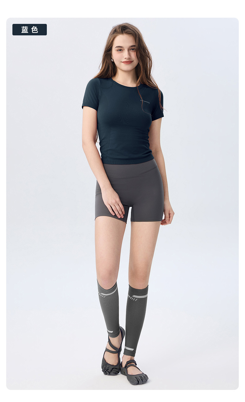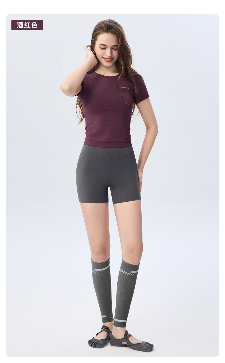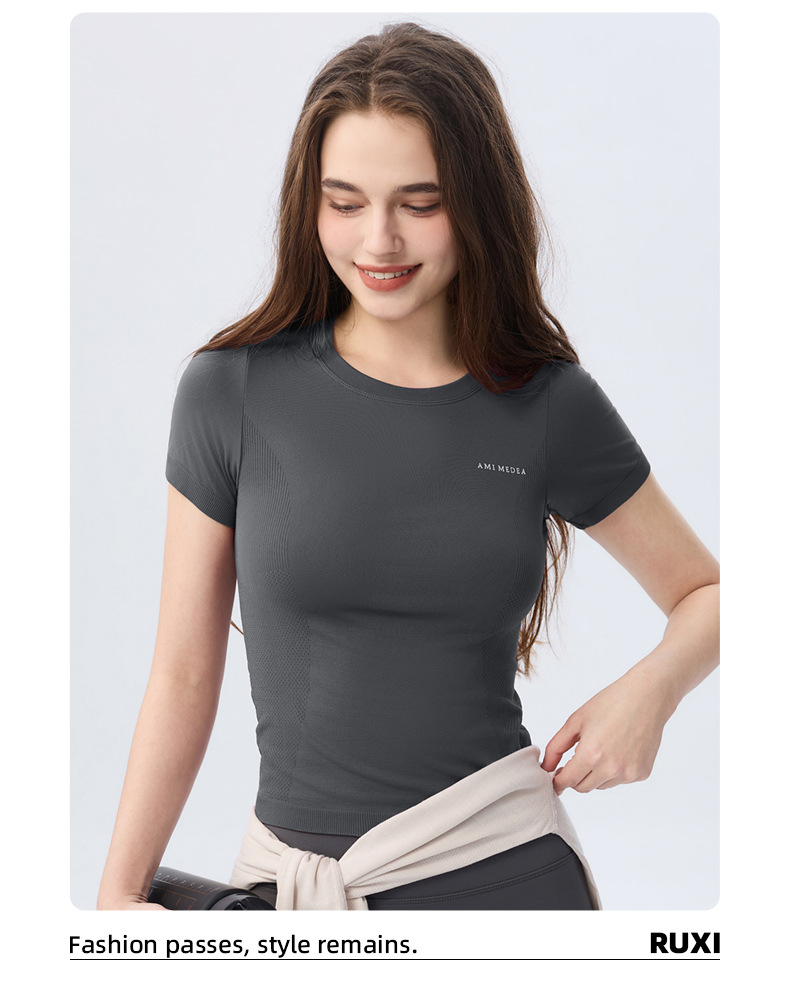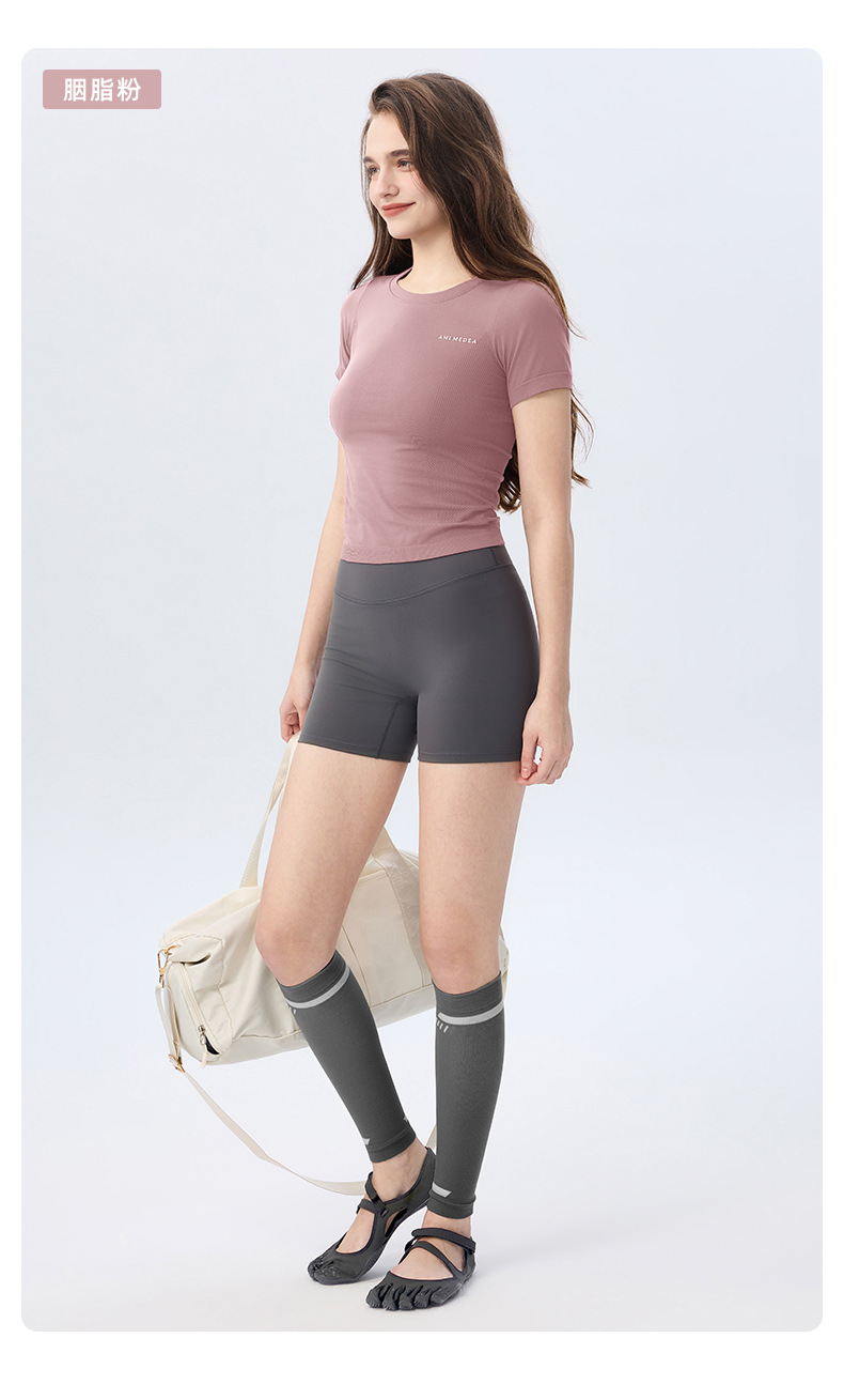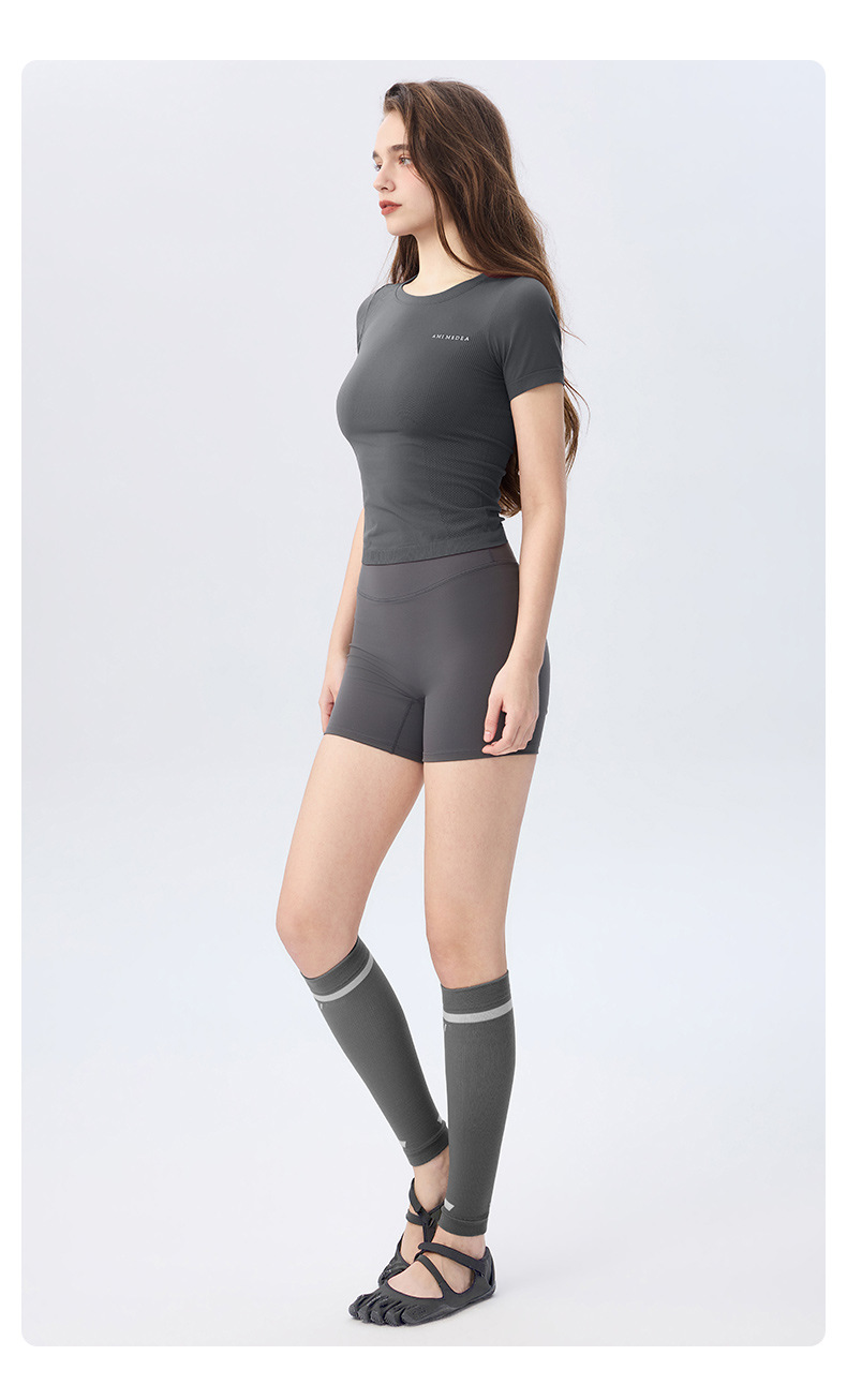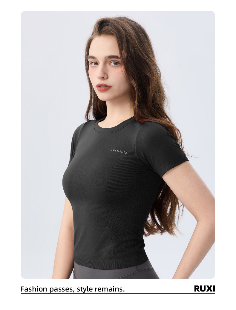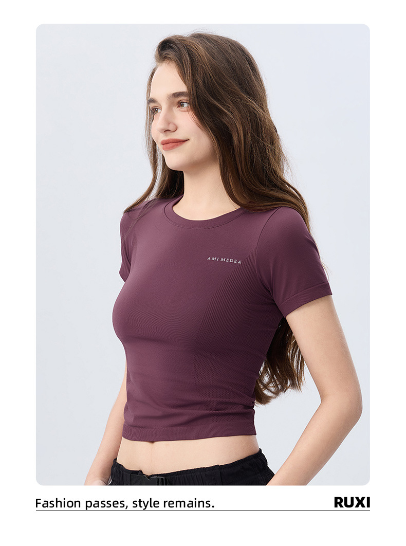 AMI MEDEA 스포츠 반팔 꽉 끼는 달리기 원활한 피트니스 세트 티셔츠 짧은 단색 요가 세트 여성 탑스토어 가기