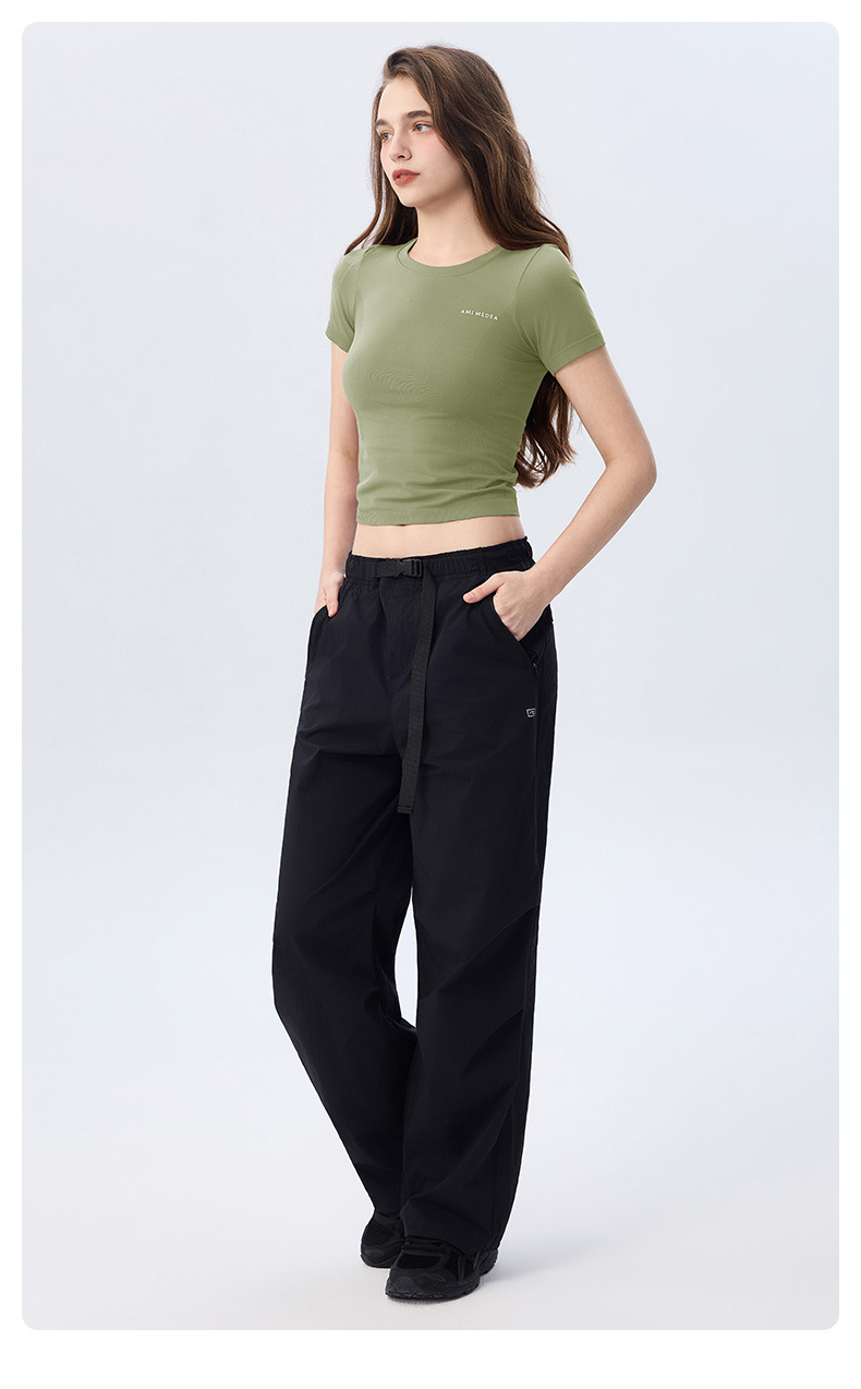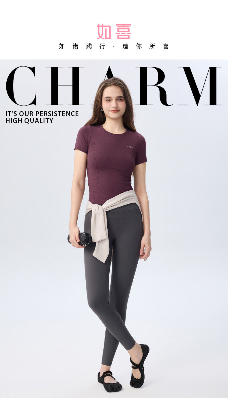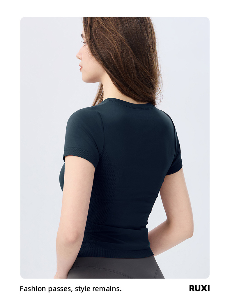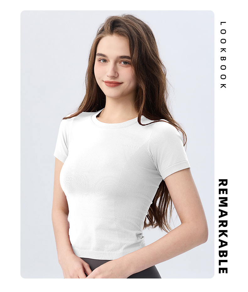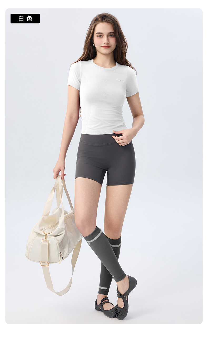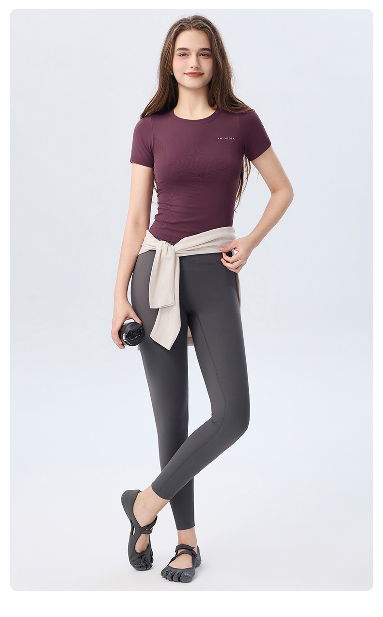 AMI MEDEA 스포츠 반팔 꽉 끼는 달리기 원활한 피트니스 세트 티셔츠 짧은 단색 요가 세트 여성 탑스토어 가기