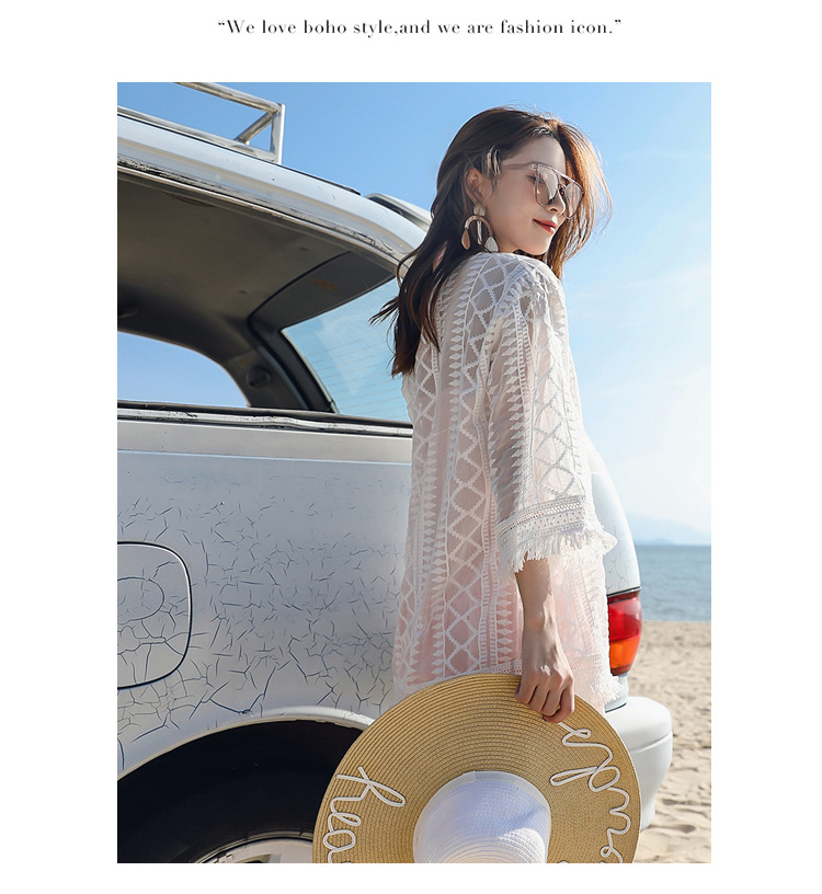 레이스 쉬폰 셔츠 술 카디건 아웃웨어 휴가 에스닉 스타일 보헤미안 비치 자외선 차단제 의류 여성용