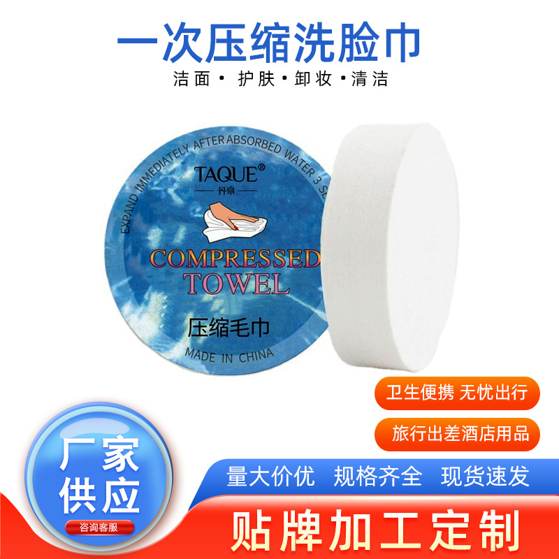 공장 재고 도매 일회용 라운드 압축 수건 휴대용 순수한면 얼굴 수건 호텔 용품 클렌징