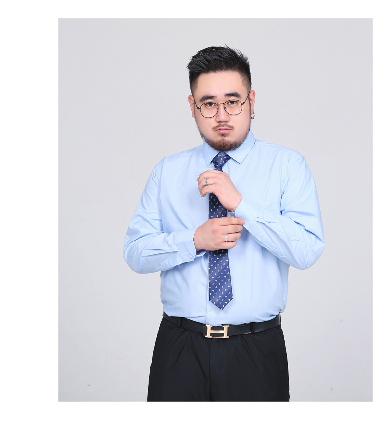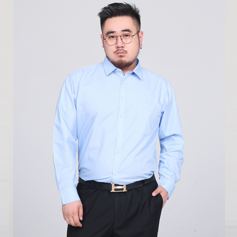 봄 새로운 비 다림질 주름 방지 솔리드 컬러 긴 소매 셔츠 남성용 느슨한 셔츠 플러스 지방 증가 50 야드 1558P55스토어 가기