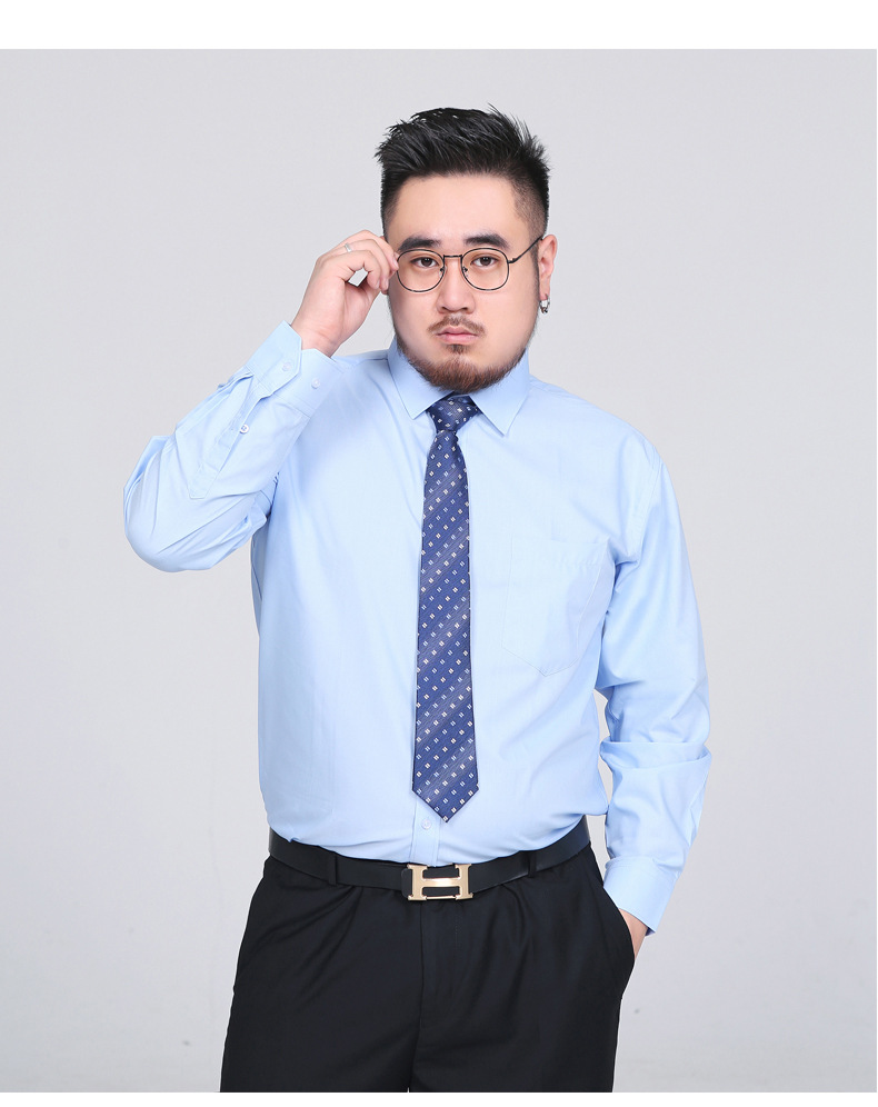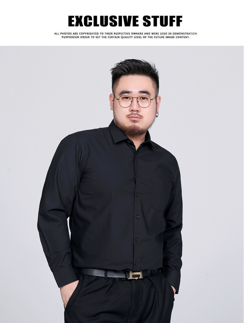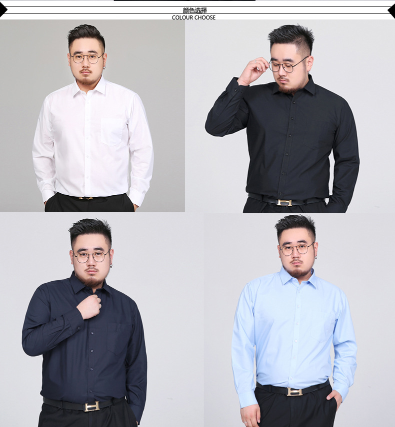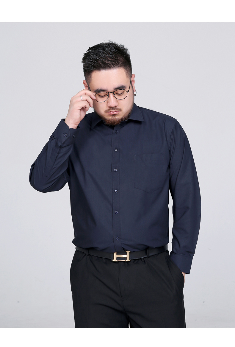 봄 새로운 비 다림질 주름 방지 솔리드 컬러 긴 소매 셔츠 남성용 느슨한 셔츠 플러스 지방 증가 50 야드 1558P55