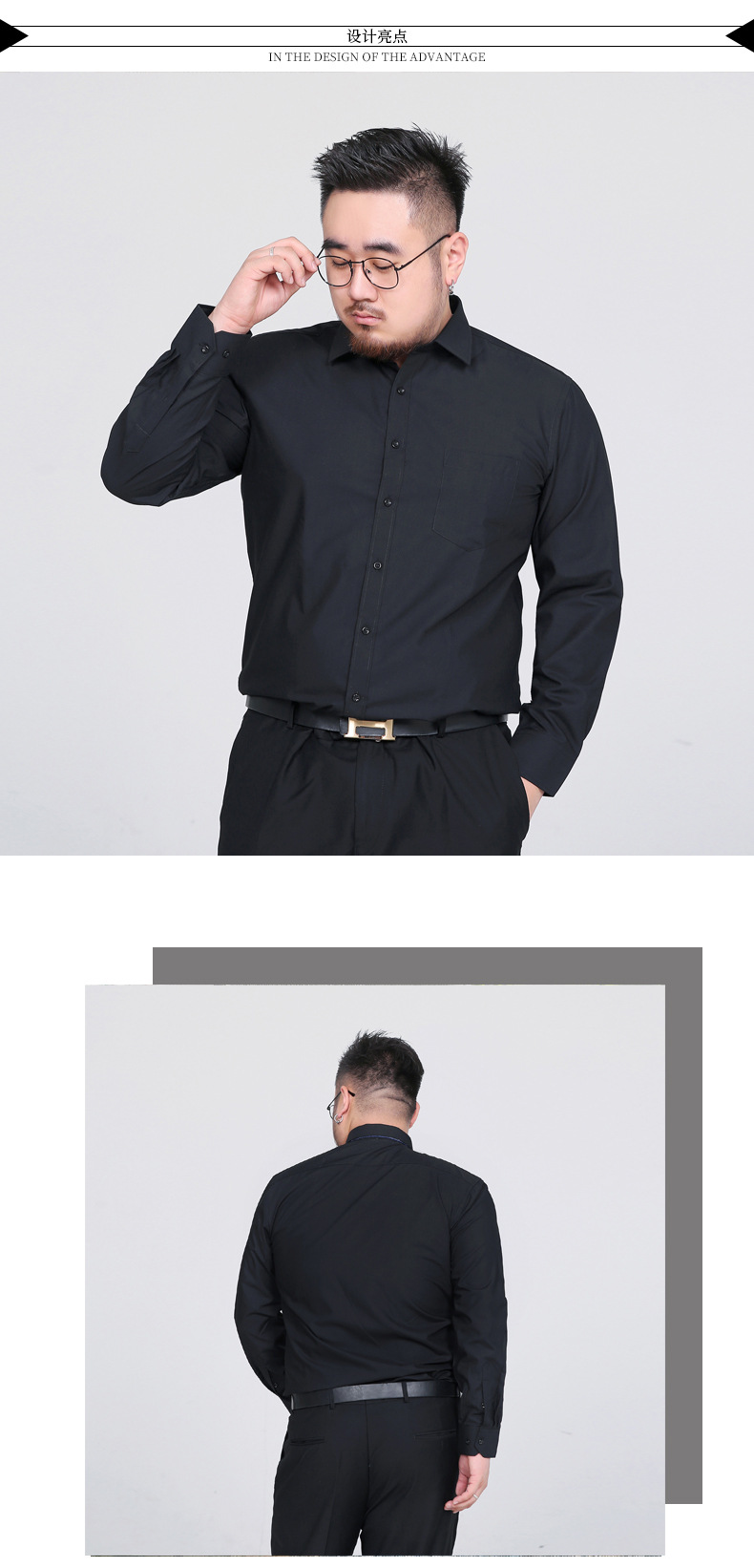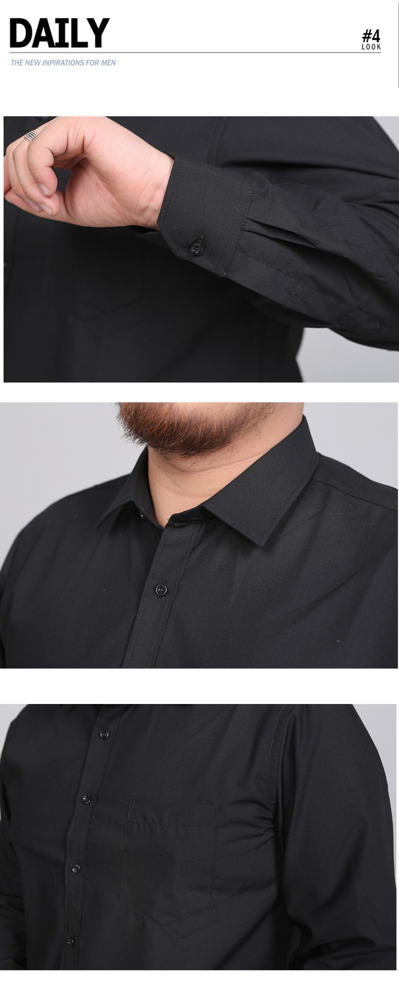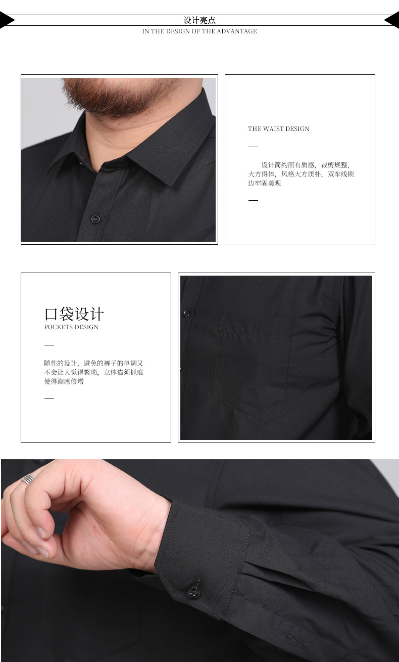 봄 새로운 비 다림질 주름 방지 솔리드 컬러 긴 소매 셔츠 남성용 느슨한 셔츠 플러스 지방 증가 50 야드 1558P55