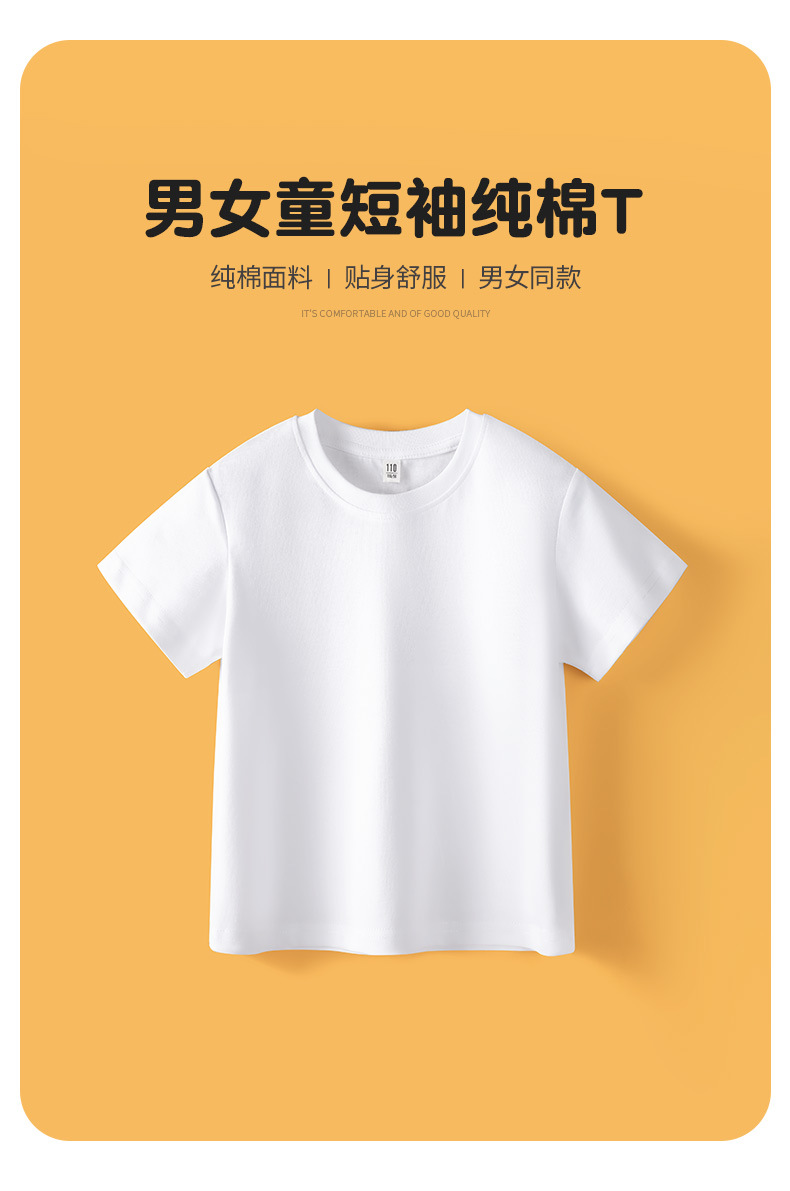 어린이 반팔 2025 여름 새 소년 소녀 순면 티셔츠 유치원 초등 및 중등 학생 단색 흰색 T스토어 가기