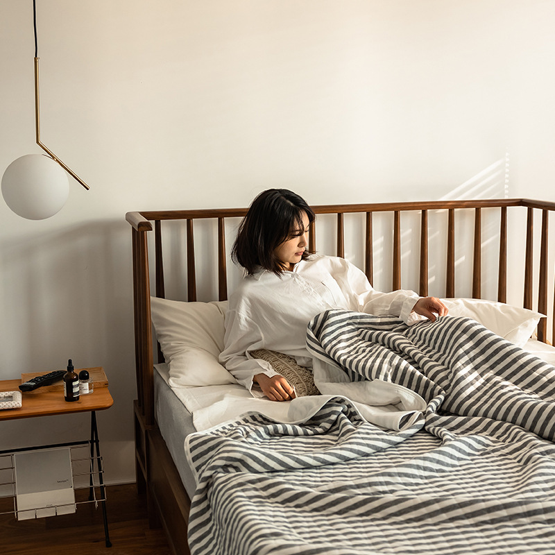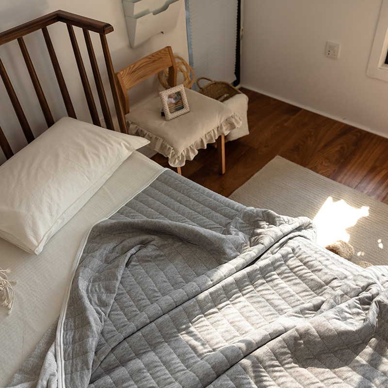 일본식 무인양품 여름 이불 천주 면 여름 시원한 이불 좋은 제품 에어컨 이불 여름 담요 순면 단색 줄무늬 이불
