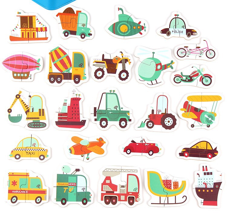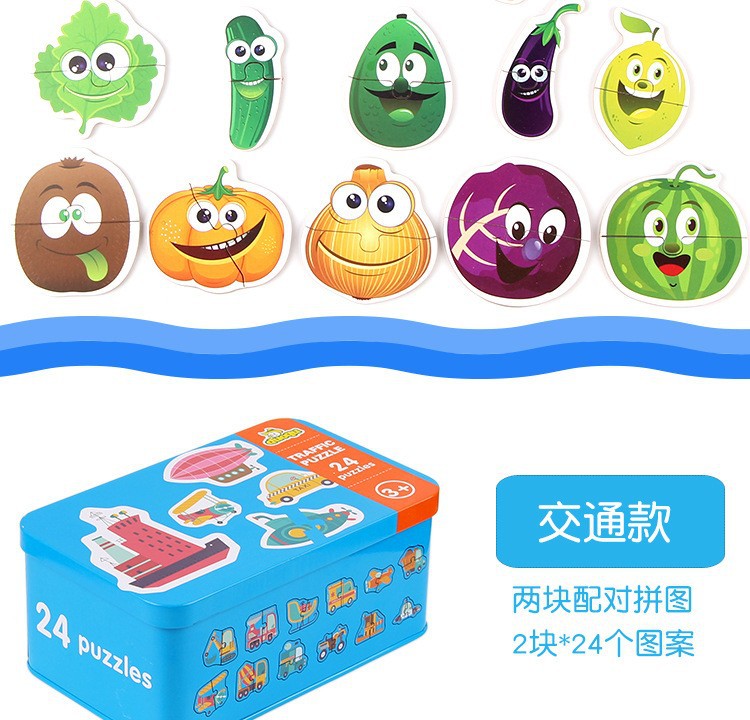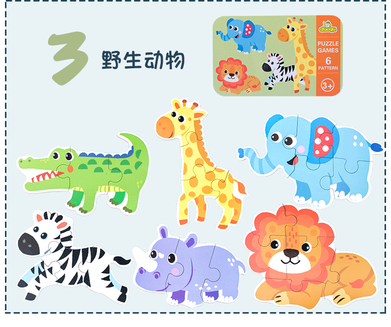 6 대 1 불규칙한 어린이 만화 동물 교통 공룡 철 상자 퍼즐 유치원 퍼즐 장난감스토어 가기