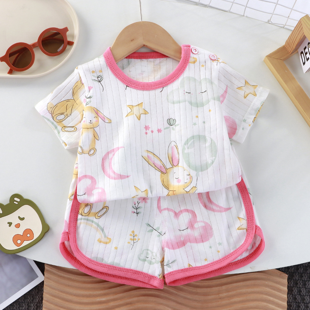 어린이 반팔 세트 코튼 걸스 여름 티셔츠 소년 투피스 아기 옷 한국 어린이 의류 새로운