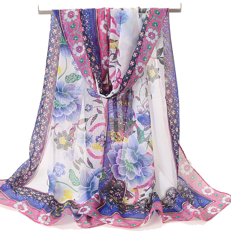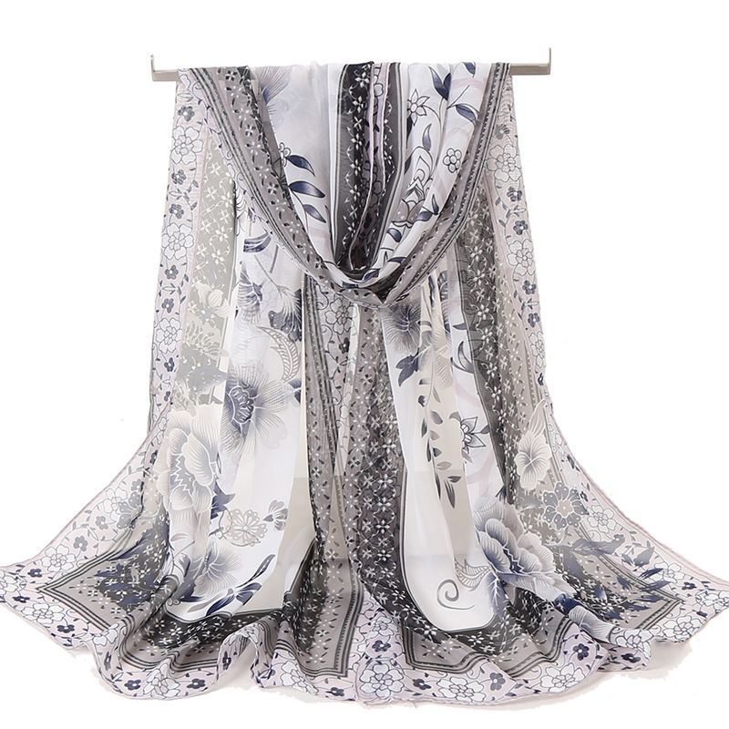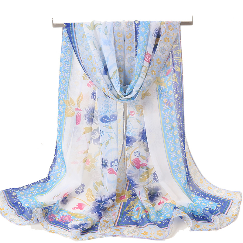 스카프 여자의 봄 한국 쉬폰 긴 실크 스카프 여자의 얇은 스카프 봄과 가을 모든 일치 겨울 자외선 차단제 비치 스카프