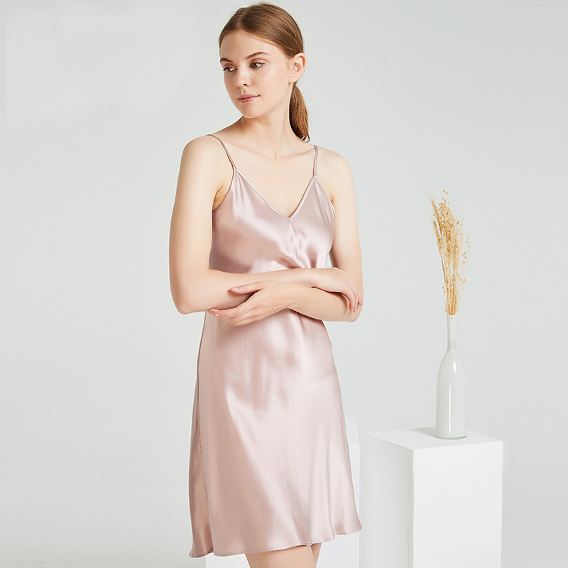 나비 자수 19 Mumi v 넥 실크 잠옷 여성 여름 뽕나무 실크 간단한 홈웨어 섹시한 실크 서스펜더 스커트스토어 가기