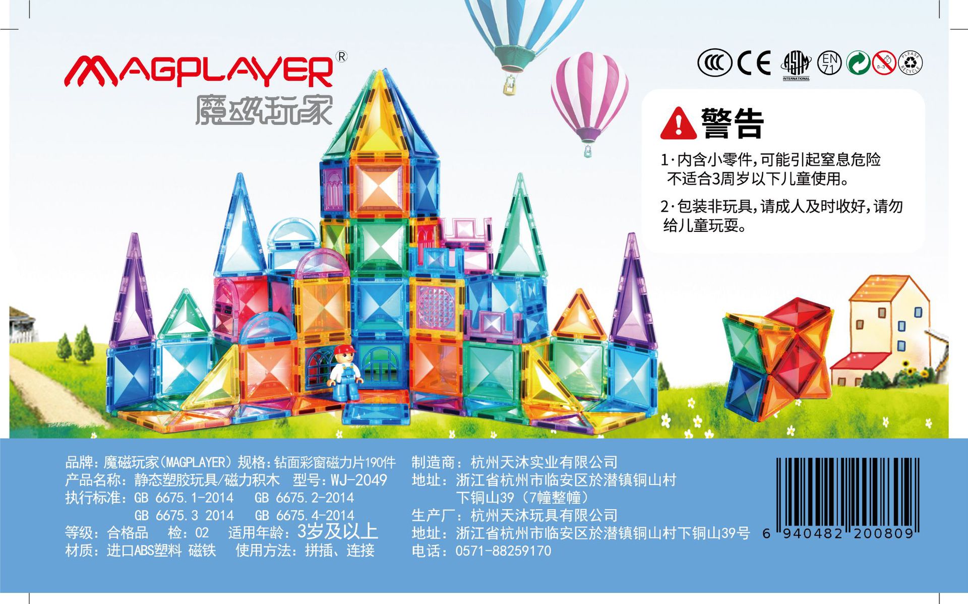 2.魔磁智慧片所选用是进口ABS塑胶,弹性良好。可组合出千变万化的造型积木(房屋建筑、交通工具、人物、动物,大型游乐园等)。
