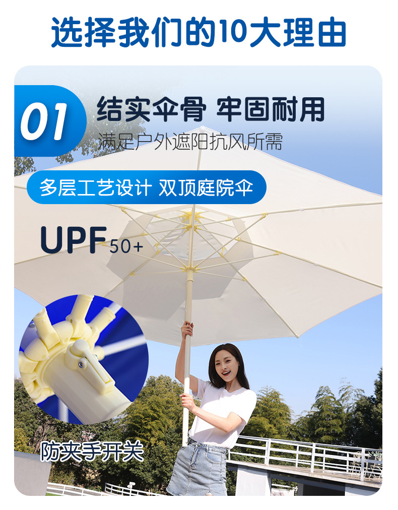 • 3.0m 황백색 이중 방풍우산(회전불가)
