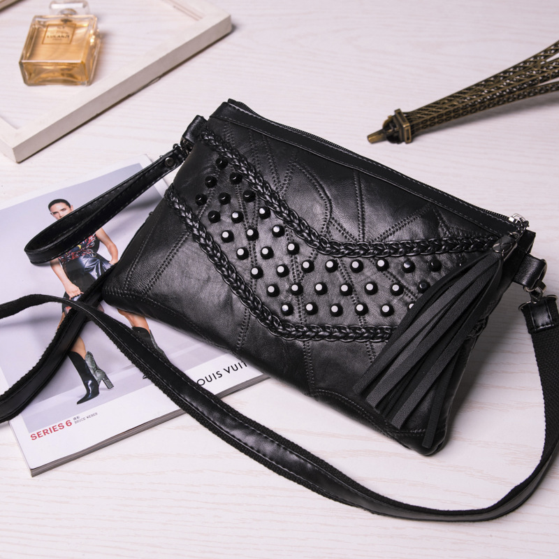 2024 부드러운 가죽 여성 가방 양피 리벳 봉투 가방 유행 패션 클러치 백 모든 경기 패션 어깨 메신저 가방