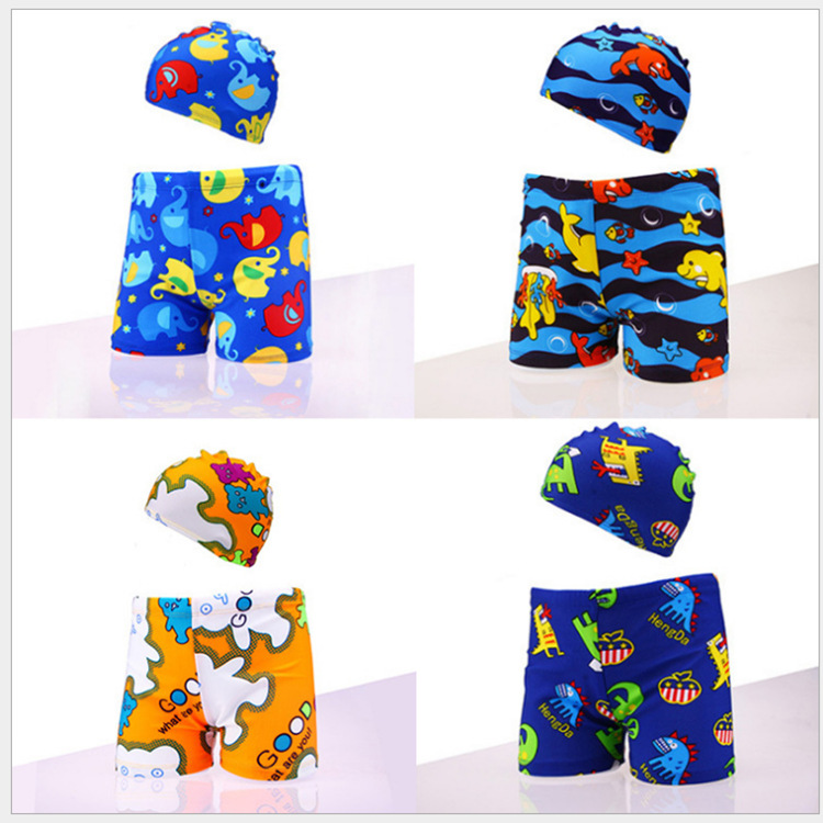 新款可爱儿童泳裤泳帽 平角儿童游泳裤 温泉可爱泳裤印花泳衣批发超值价:¥4.6