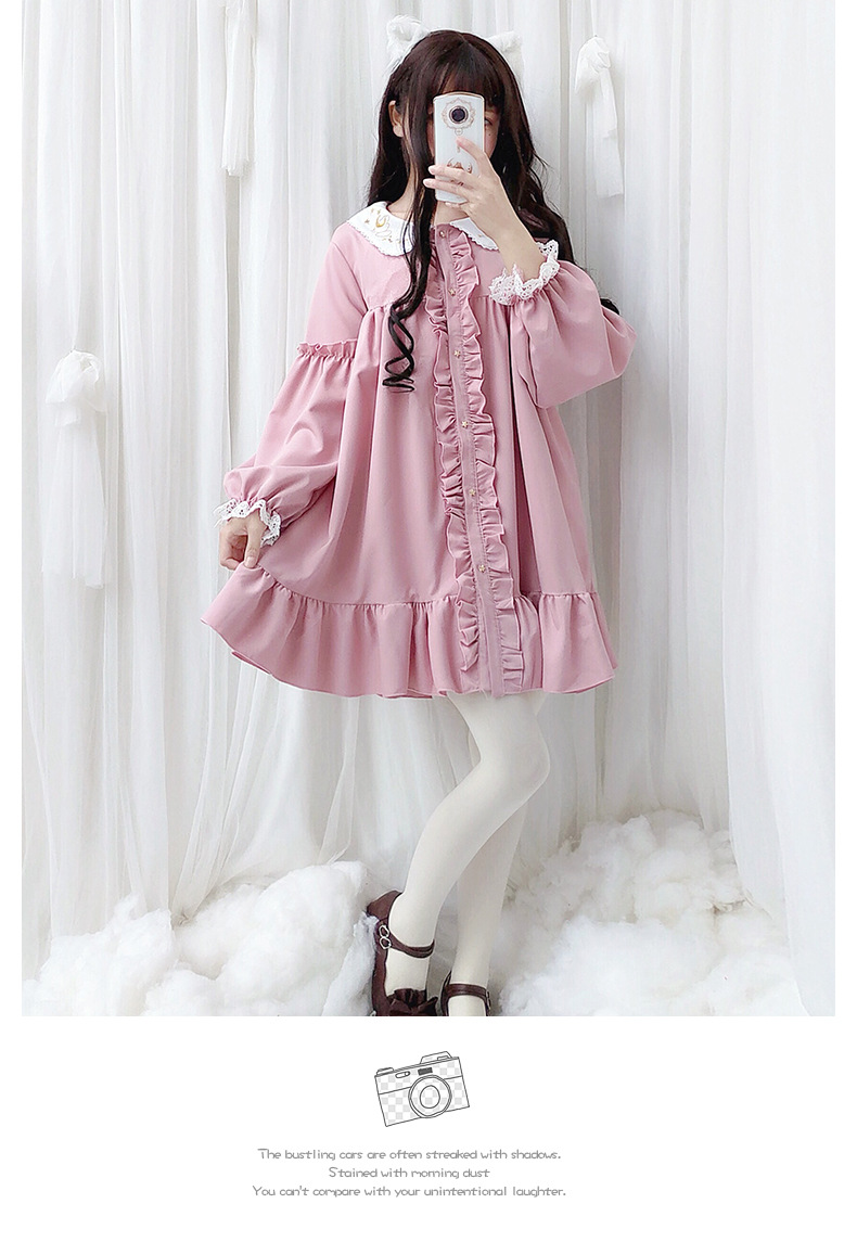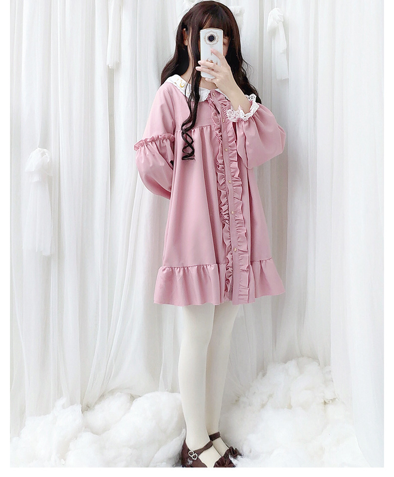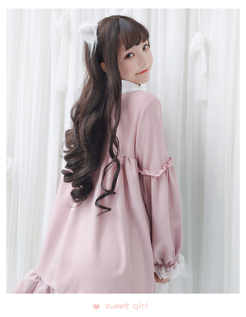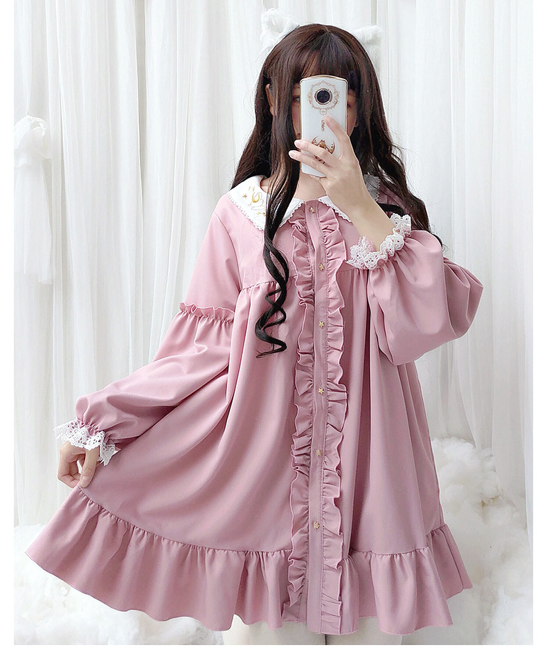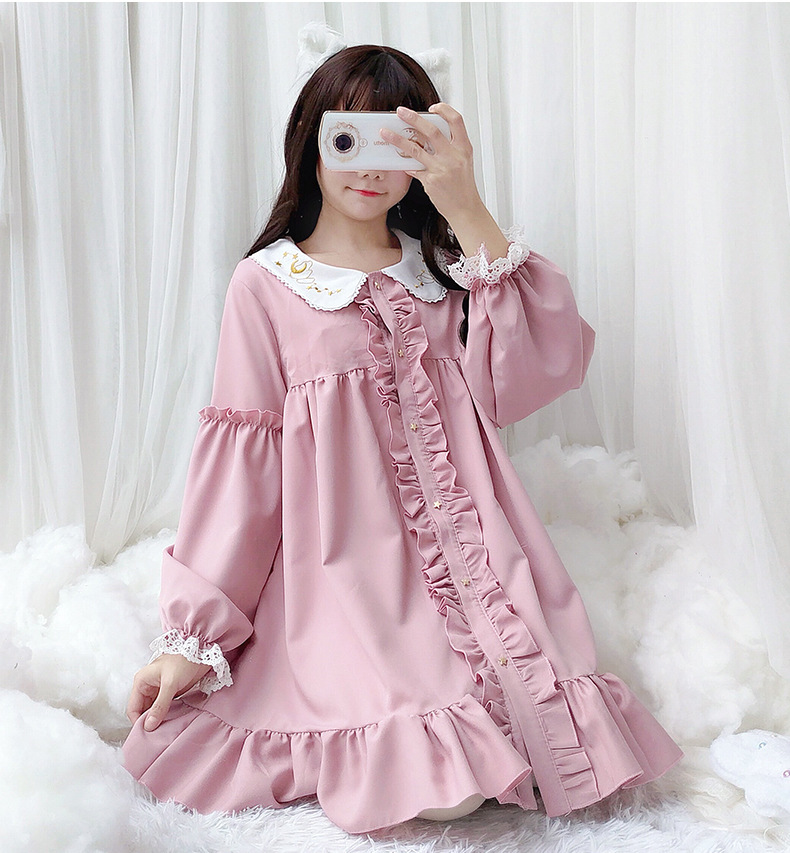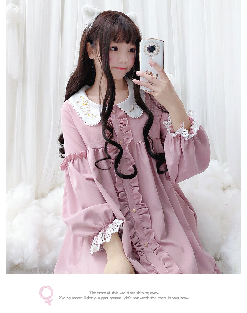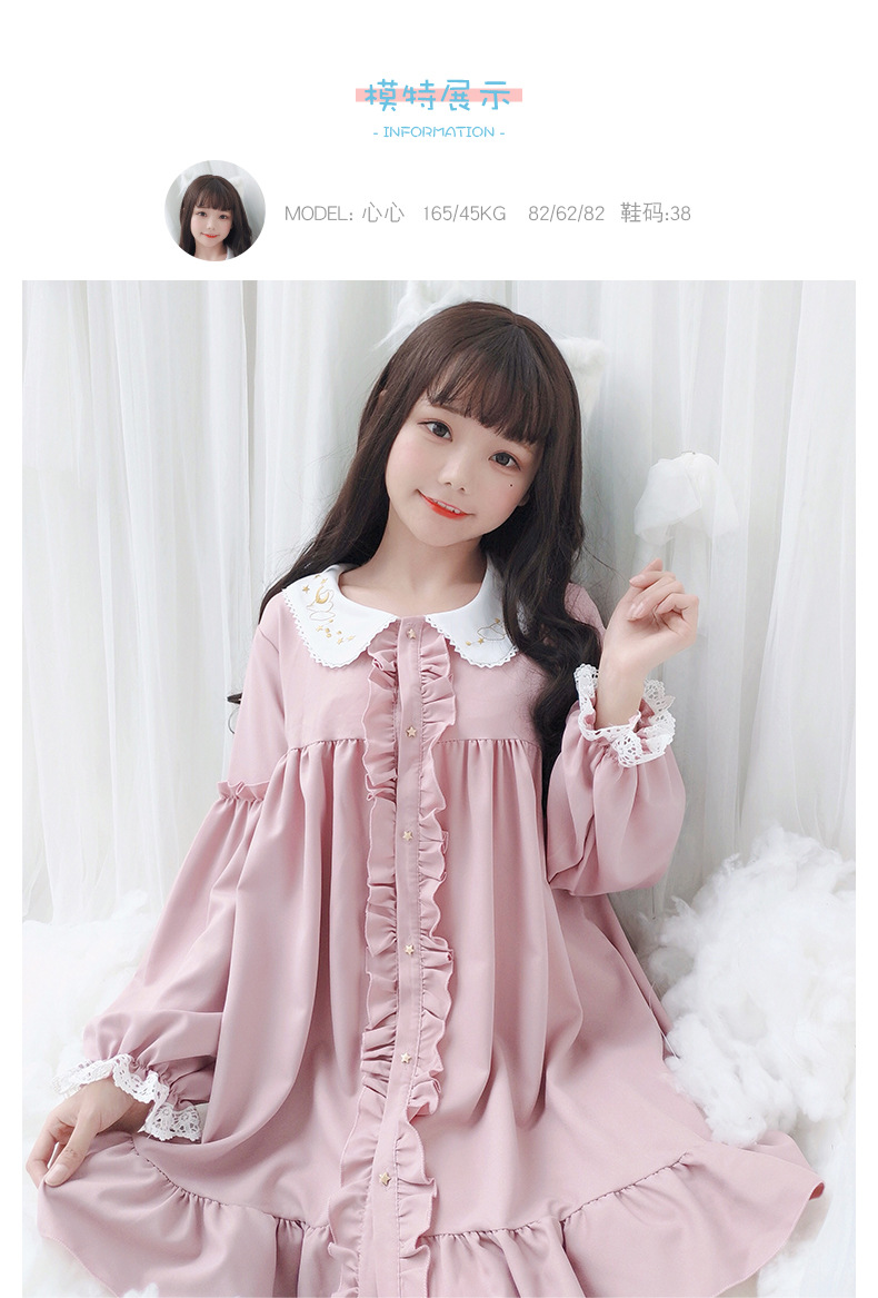 일본식 로리타 원피스 op 드레스 퍼프 스커트 쉬폰 긴팔 별빛 스커트 소녀 귀여운 별 스커트스토어 가기